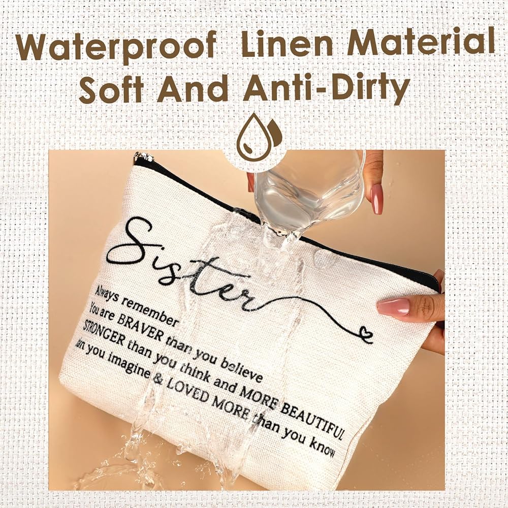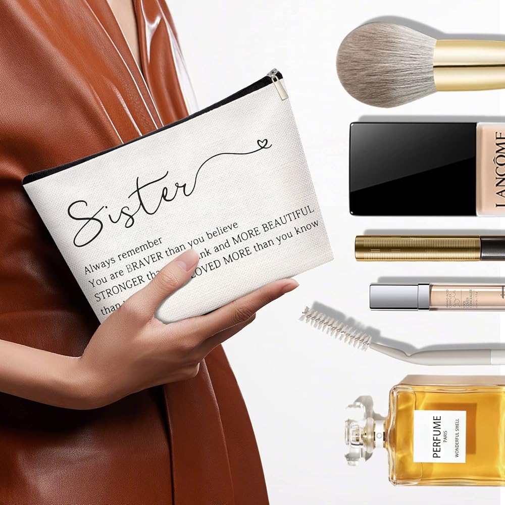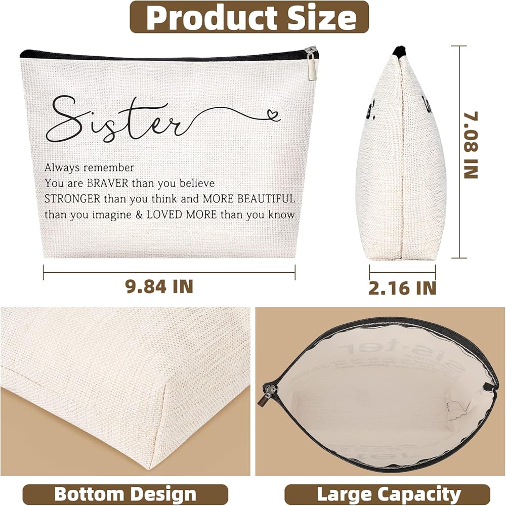 حقيبة تنظيم المكياج من LISEVO Sister Gifts، فكرة ملهمة مصنوعة يدويًا للنساء، أنت أكثر شجاعة مما تعتقد، حقيبة أدوات الزينة لمستحضرات التجميل لعيد ميلاد المرأة وحفلات إشبينة العروس