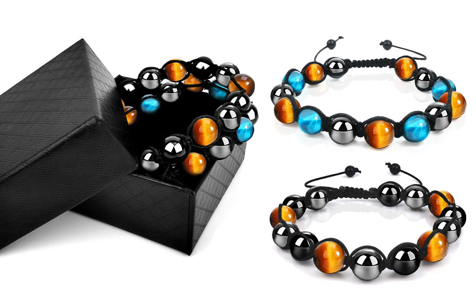 تحتوي العبوة الواحدة على نمطين من أساور عين النمر، هدية رائعة لوالدك أو زوجك أو ابنك أو صديقك. أساور الشفاء مناسبة لأي مهرجانات ذات طابع خاص مثل الكريسماس وأعياد الميلاد.