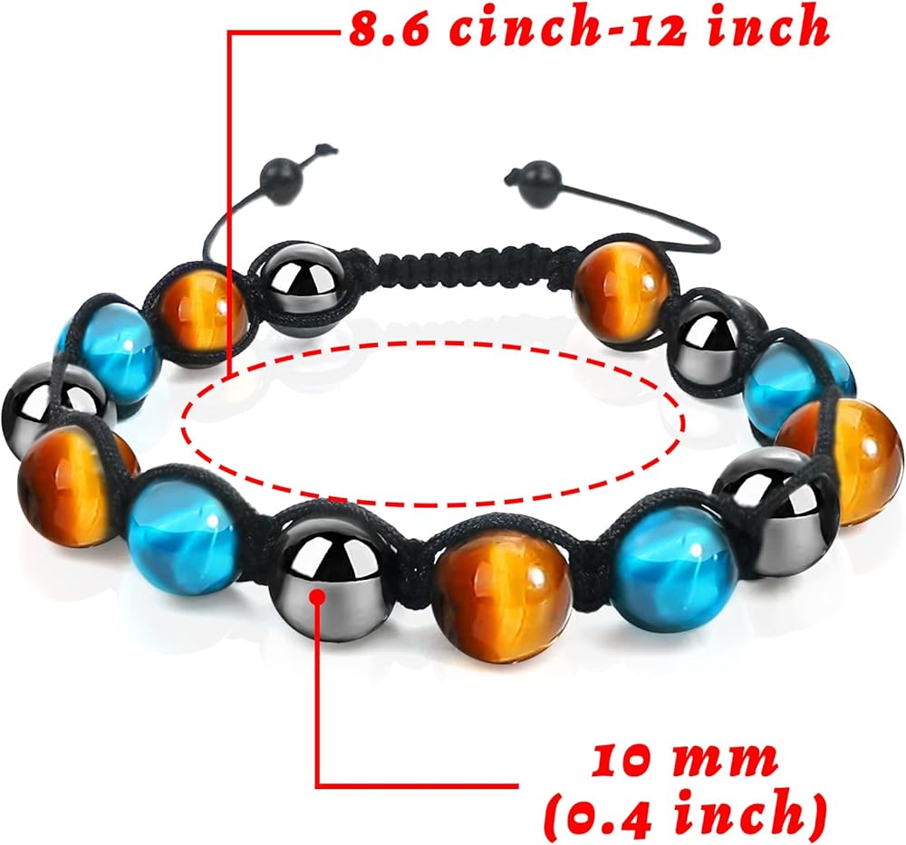 • أساور مثالية: تأتي مجموعة أساور عين النمر هذه مع مجموعتين في صندوق أسود. طول أساور الشفاء 16 سم - 29 سم (6-11 انش) يناسب معصم 5-10 انش. يمكنك قياس معصمك وراحة يدك للتأكد من أنه يمكنك ارتداء السوار.
