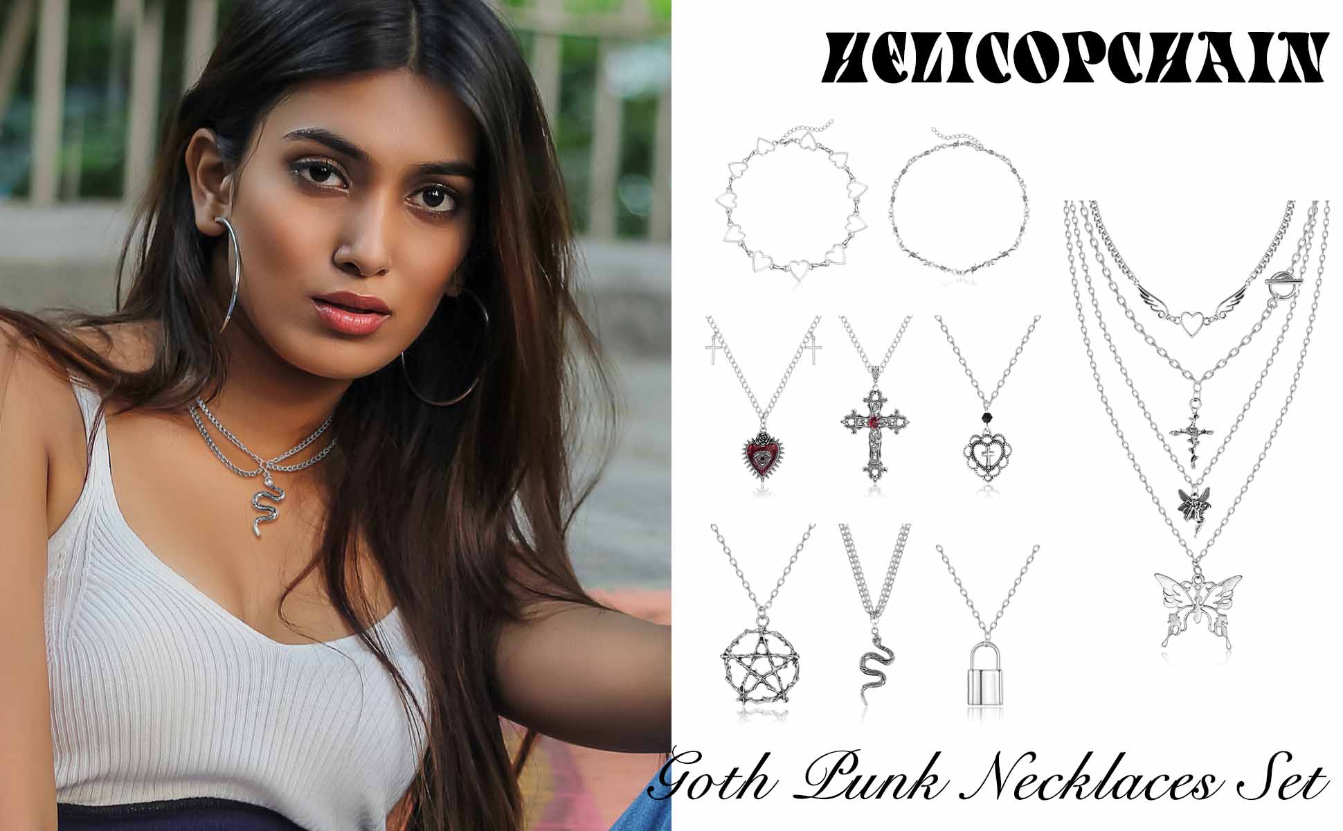 ❂مجوهرات الجرونج القوطية❂ قلادة قوطية عتيقة بتصميم قوطي فريد بأنماط مختلفة، مليئة بخصائص الشرير الداكن الغامضة، لتكون امرأة رائعة.