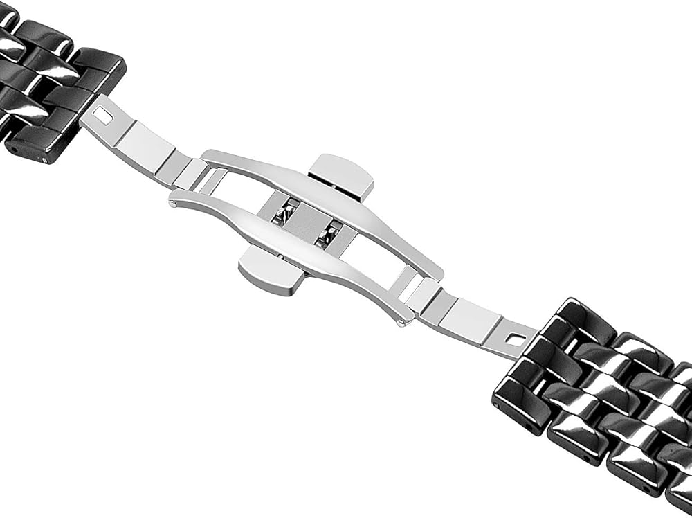 حزام ساعة من السيراميك بالكامل: صناعة متقنة مصممة بحلقات سيراميك مربعة لامعة. يمنحك السطح المصقول بدقة إحساسًا قويًا بالجودة والأناقة العالية.