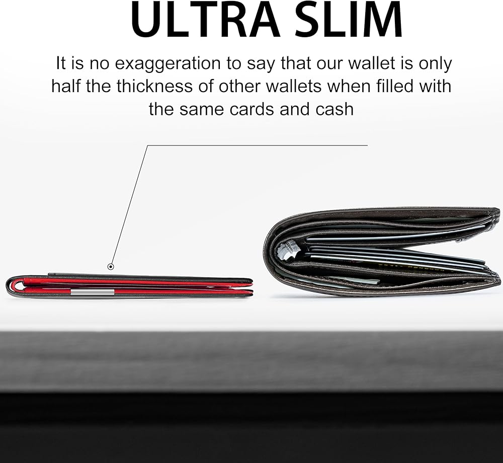 【حماية من حجب RFID】كل محفظة رجالية من GSOIAX مجهزة بتقنية منع سرقة RFID المتقدمة. يمكن للمادة المركبة المعدنية الفريدة المدمجة أن تحجب تمامًا إشارات RFID التي تبلغ 13.56 ميجاهرتز أو أعلى، مما يمنع أي مسح وسرقة غير مصرح بها، ويحمي أموالك وأمن معلوماتك.