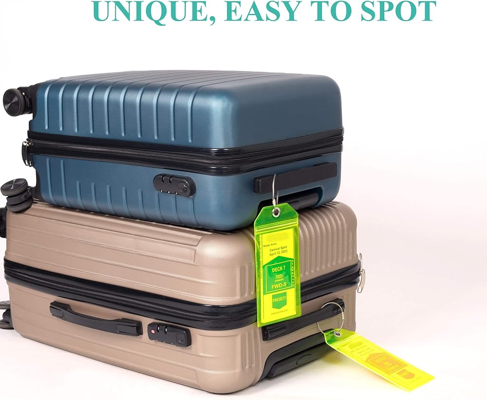 Made of the transparency thick PVC, our luggage tags for cruise ship (4 ounces) are heavier than most cruising tags.