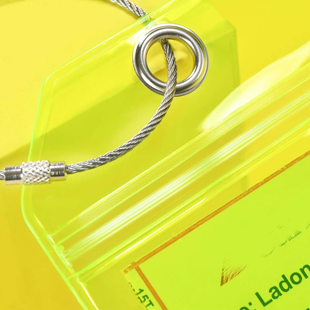 Robust metal eyelet & vinyl coated Extra Strong Braided steel loops, label or cruise ship tags won't rip again.