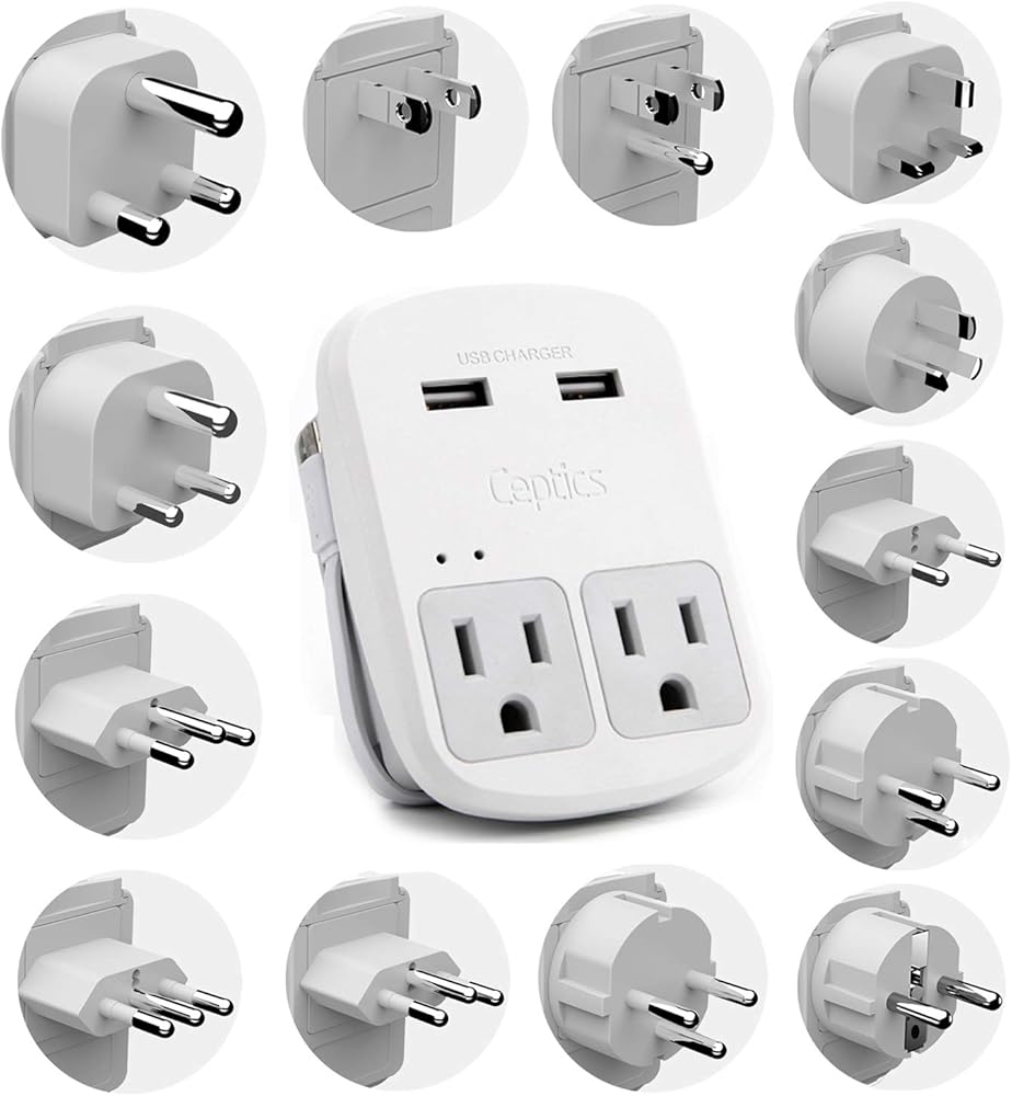 شاحن 4 في 1 يمكنك شحن 4 أجهزة بمنفذ واحد فقط. لذلك لن تضطر إلى البحث في جميع أنحاء غرفة الفندق بحثًا عن منافذ إضافية. 1 مدخل يو اس بي + 2 مدخل أرضي في الولايات المتحدة الأمريكية + 1 نوع سي أكثر مما تحتاجه لأغراض السفر. اتصال أرضي + حماية من اندفاع التيار اتصال أرضي 3 دبابيس في معظم البلدان يسمح لك بتوصيل جهازك بأمان. وحماية مدمجة من اندفاع التيار - تحمي أجهزتك الإلكترونية المتطورة من ارتفاع الجهد الكهربائي الضار والارتفاعات. تأكد أيضًا من أن جهازك الإلكتروني متوافق مع جهد البلدان التي تسافر إليها. تتضمن محولات السفر 6 أنواع من المحولات الدولية - مقابس المملكة المتحدة (النوع جي)، الولايات المتحدة (النوع B)، الاتحاد الأفريقي (النوع I)، EU (النوع E/F)، JP (النوع a)، مقابس الاتحاد الأوروبي/الإمارات (النوع C) المتوافقة مع المنافذ في أمريكا الشمالية والمملكة المتحدة ومعظم أوروبا وأستراليا واليابان وأجزاء من إفريقيا والشرق الأوسط وآسيا والصين وغيرها. يرجى ملاحظة أن مجموعة محولات السفر هذه لا تتضمن قابس محول لإيطاليا وسويسرا والبرازيل وتشيلي وجنوب إفريقيا. ضمان لمدة عامين، نقدم ضمانًا لمدة عامين، لأي سبب من الأسباب يمكنك إرساله إلينا وسوف نستبدله مجانًا دون طرح أي أسئلة. اشترِ محولات سبتيكس اليوم براحة لأكثر من 140,000 تقييم إيجابي ومليون محول سفر إجمالي تم بيعه في جميع أنحاء العالم.