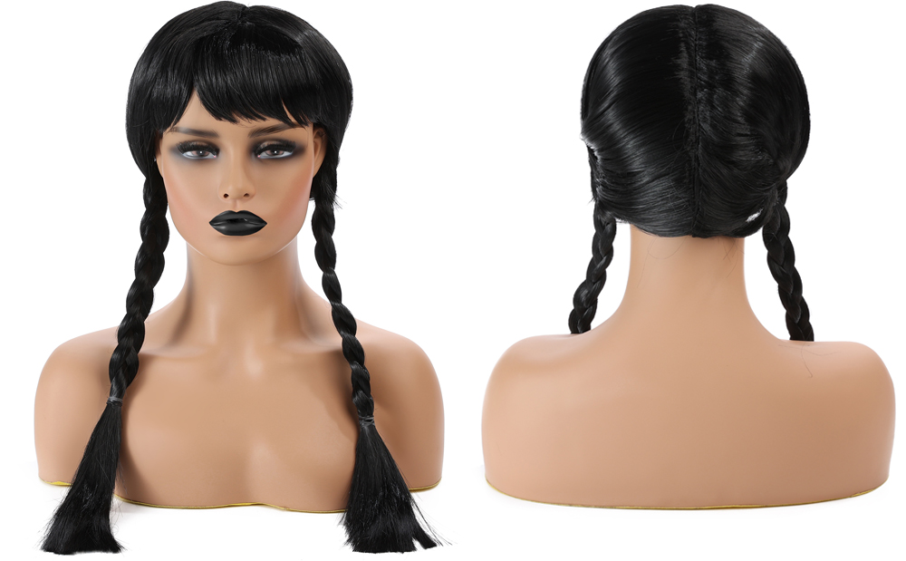 تطابق مع فستان تنكري أسود: المظهر القوطي لا يكتمل بدون شعر مستعار أسود طويل. هذا الشعر المستعار ذو الضفائر الطويلة يتناسب بشكل رائع مع فستان تنكري أسود. لإكمال المظهر العام، هذا الشعر المستعار الطويل المضفر سيجعل أي فتاة تبدو وكأنها ملكة الرقص!