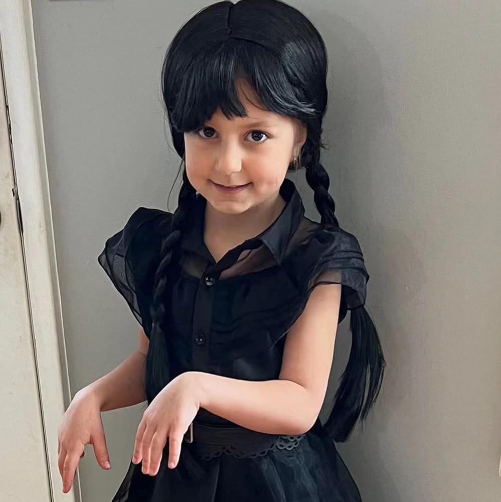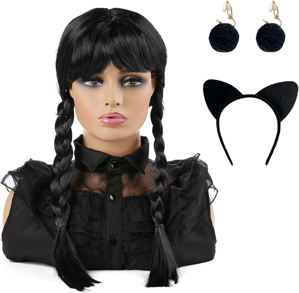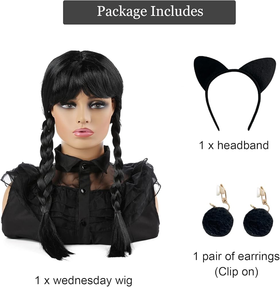 شعر مستعار لحفلات الهالوين: تتضمن العبوة باروكة شعر مستعار سوداء طويلة مفرودة مع غرة، وزوج واحد من الأقراط السوداء، وعصابة رأس سوداء. شعر مستعار الهالوين التنكري لطيف للتمشيط ويحافظ على شكله، يمكنك تمشيطه أو تعديله ليناسب رأسك ووجهك بشكل أفضل. ضعي لمسة نهائية لطيفة على زيك القوطي الرائع مع هذا الشعر المستعار الأسود المجدول للأطفال والكبار.