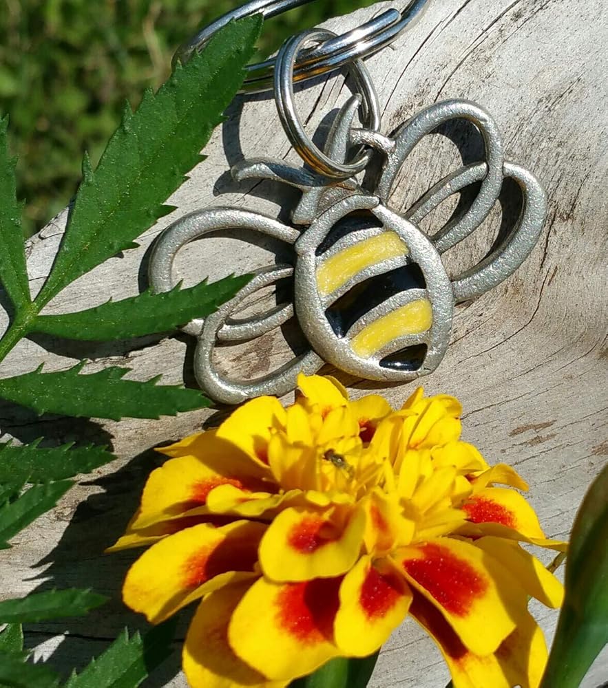 حلقة مفاتيح بامبلبي مصنوعة يدويًا في ورشة عمل ميدلبيري فيرمونت الخاصة بنا. تأتي كل حلقة مفاتيح من دانفورث بيوتر على حلقتين منفصلتين. الارتفاع: 1.25 بوصة العرض: 1.75 (مع حلقة مفاتيح)