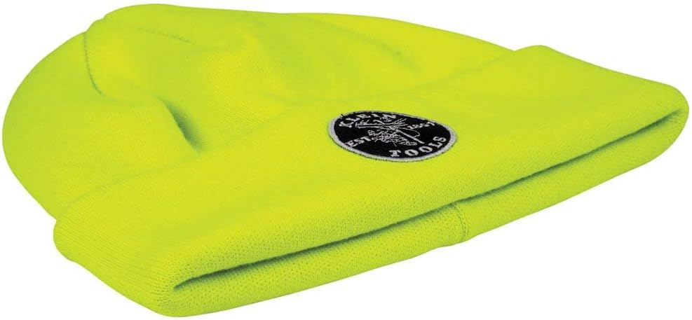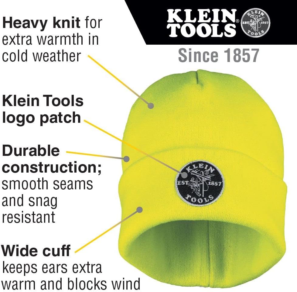 كلين تولز يتم عرض رقعة الشعار بشكل بارز على مقدمة القبعة المحبوكة الصفراء عالية الوضوح
