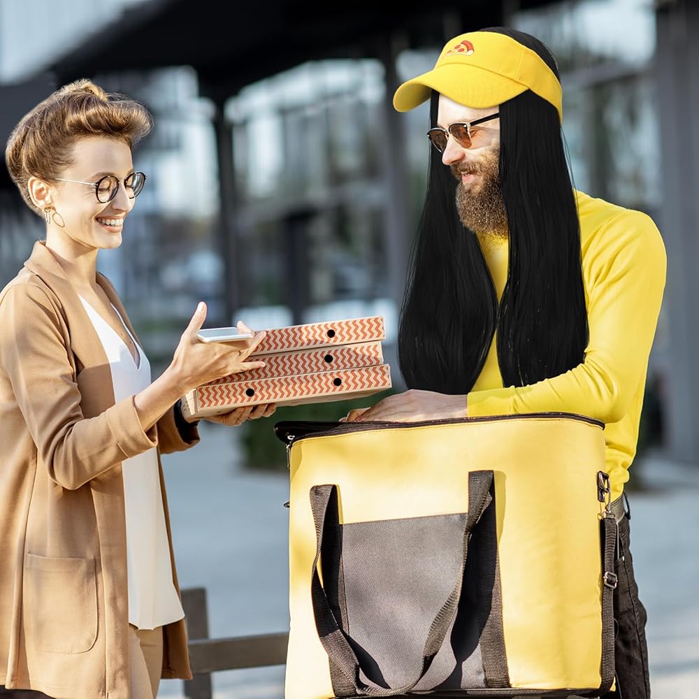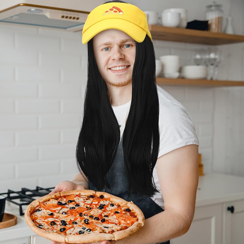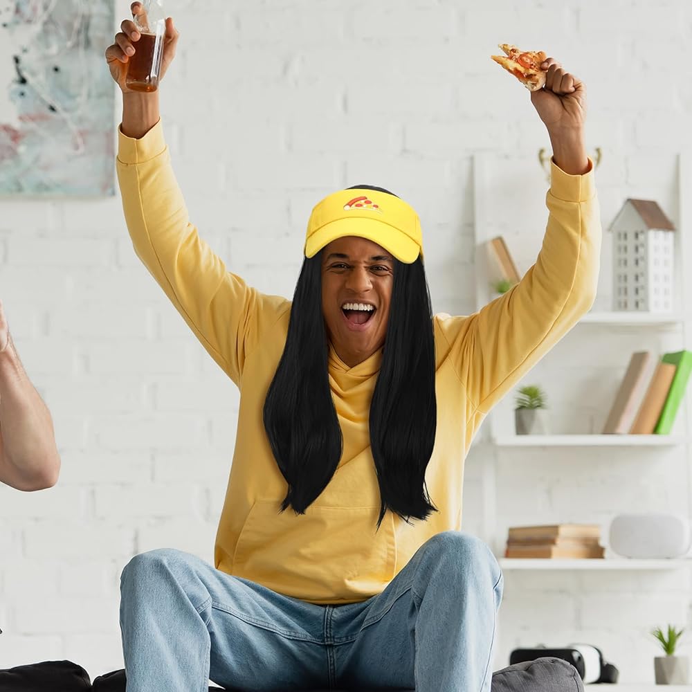 مجموعة حفلات الهالوين: تتضمن المجموعة قطعة واحدة من شعر مستعار أسود طويل للهالوين مقاس 28 بوصة وقناع أصفر بنمط البيتزا، المجموعة الكاملة يمكن أن تلبي طلب الاستخدام والاستبدال، مناسبة للهالوين أو حفلات لعب الأدوار أو المهرجانات الموسيقية.