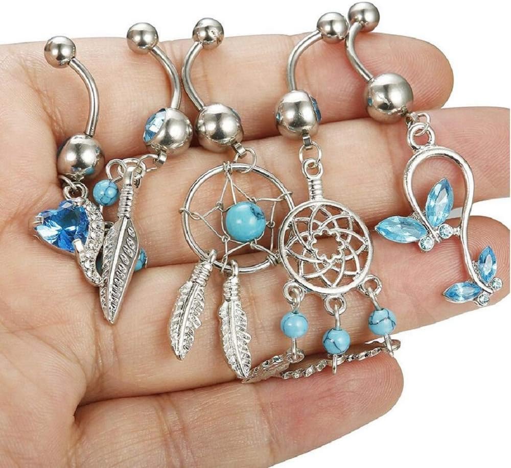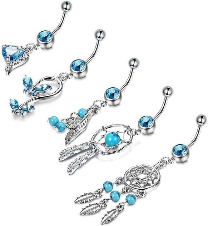 مجموعة خاتم السرة بنمط صائد الأحلام الجميل. مع 5 أنماط مختلفة، يمكنك تجربة مجموعة متنوعة من الأنماط وإظهار واحد لك من أفضل الملحقات لمعجبك. إنها قطعة مجوهرات جميلة لك أو لصديقتك العزيزة وحبيبك.