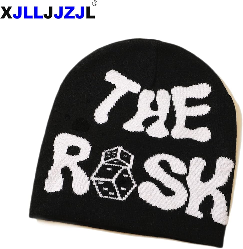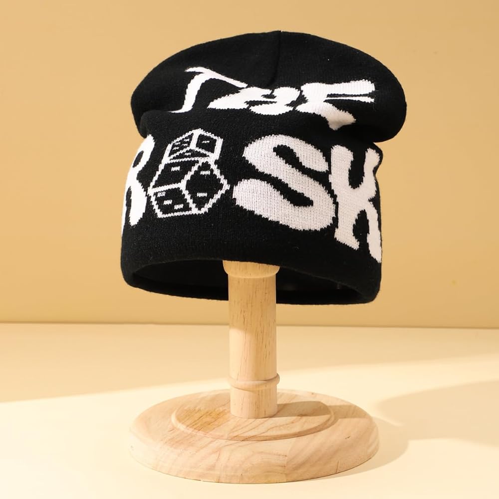 XJLLJJZJL القوطية إلكتروني طباعة Skullies محبوك قبعة الهيب هوب قبعة الشتاء الدافئة فاسق بيني عارضة في الهواء الطلق قبعة تزلج مترهل الجمجمة قبعة سوداء