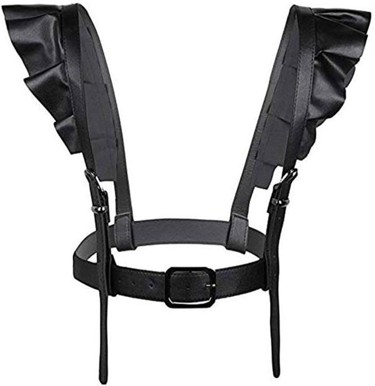 Qiansheng المرأة الجلد حزام حزام قفص مشبك قابل للتعديل الأشرطة الشرير حزام الخصر سلسلة حملات المتناثرة (أسود)