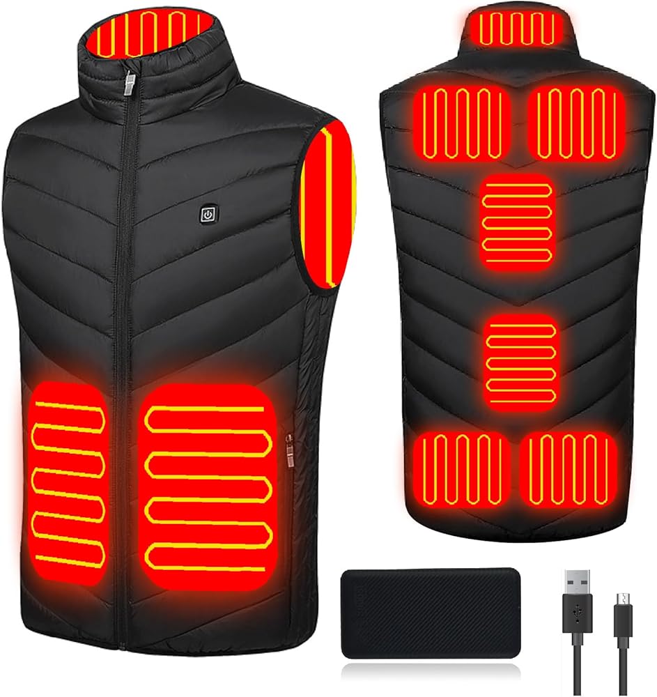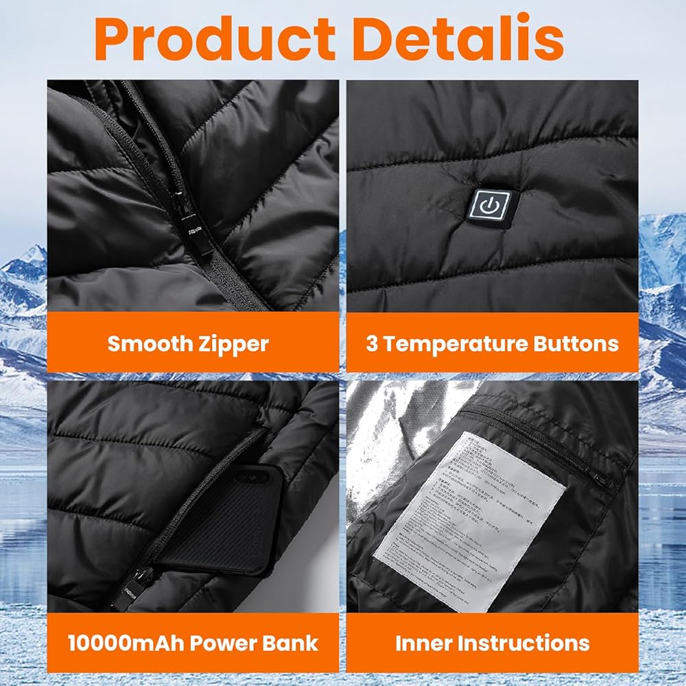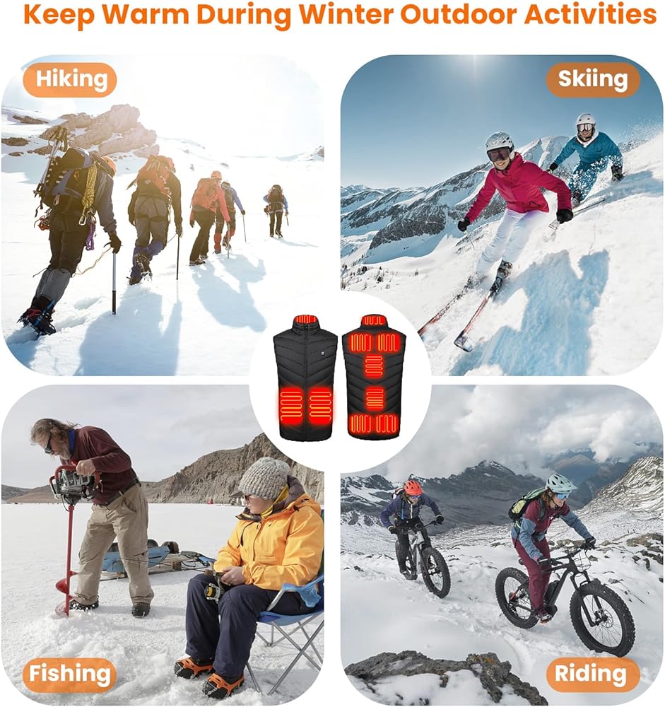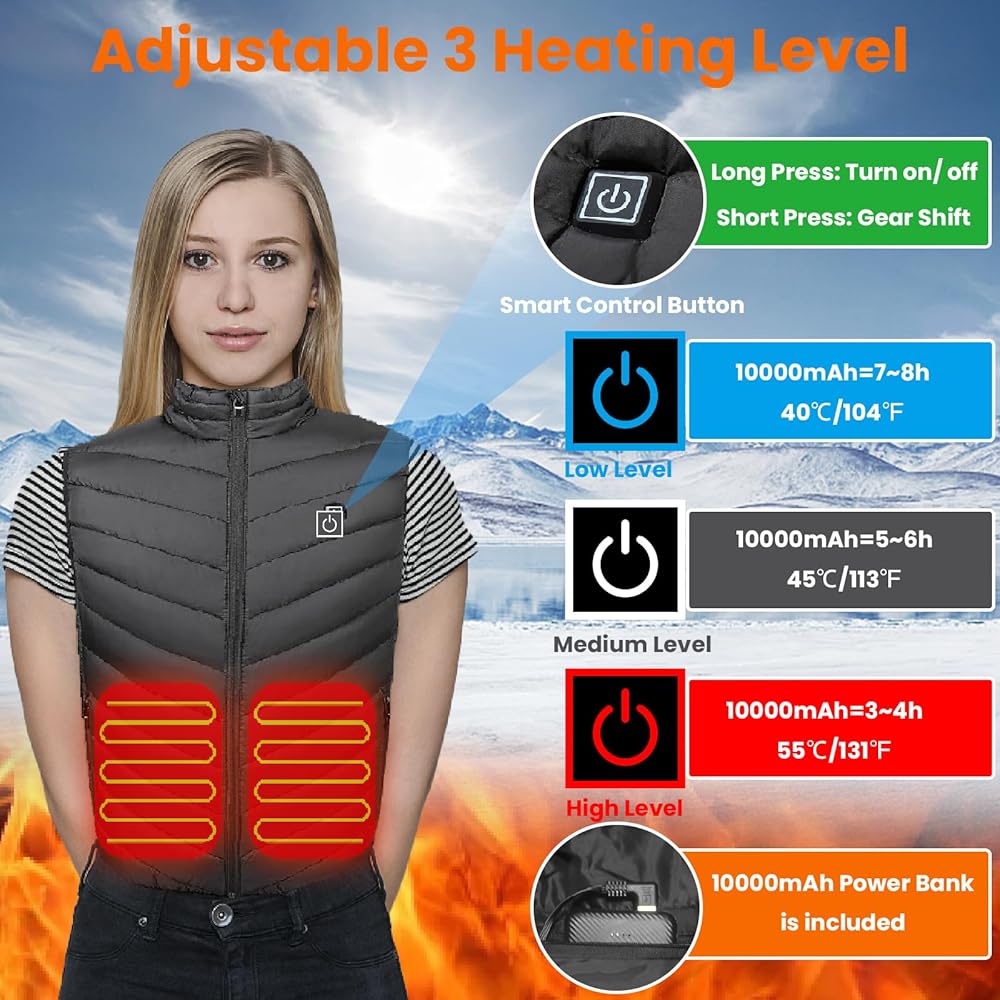 🔥【10000MAH LONG ENDURANCE】The rechargeable heated vest can provide up to 8 hours of long-lasting warmth, ensuring that you can stay warm even during long outdoor activities, making you comfortable to move in cold winter weather.
