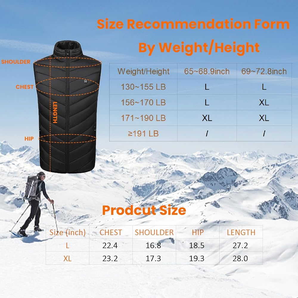 🔥【WARM & COMFORTABLE MATERIAL】Made of super soft polyester, the men women heated vest features excellent windproof, warm and comfortable wear quality, ensuring that you can enjoy sports outdoors without limiting. The smart heated vest are designed for most people, such as cold weather workers and other people engaged in outdoor activities (such as cycling, hiking and other winter sports).