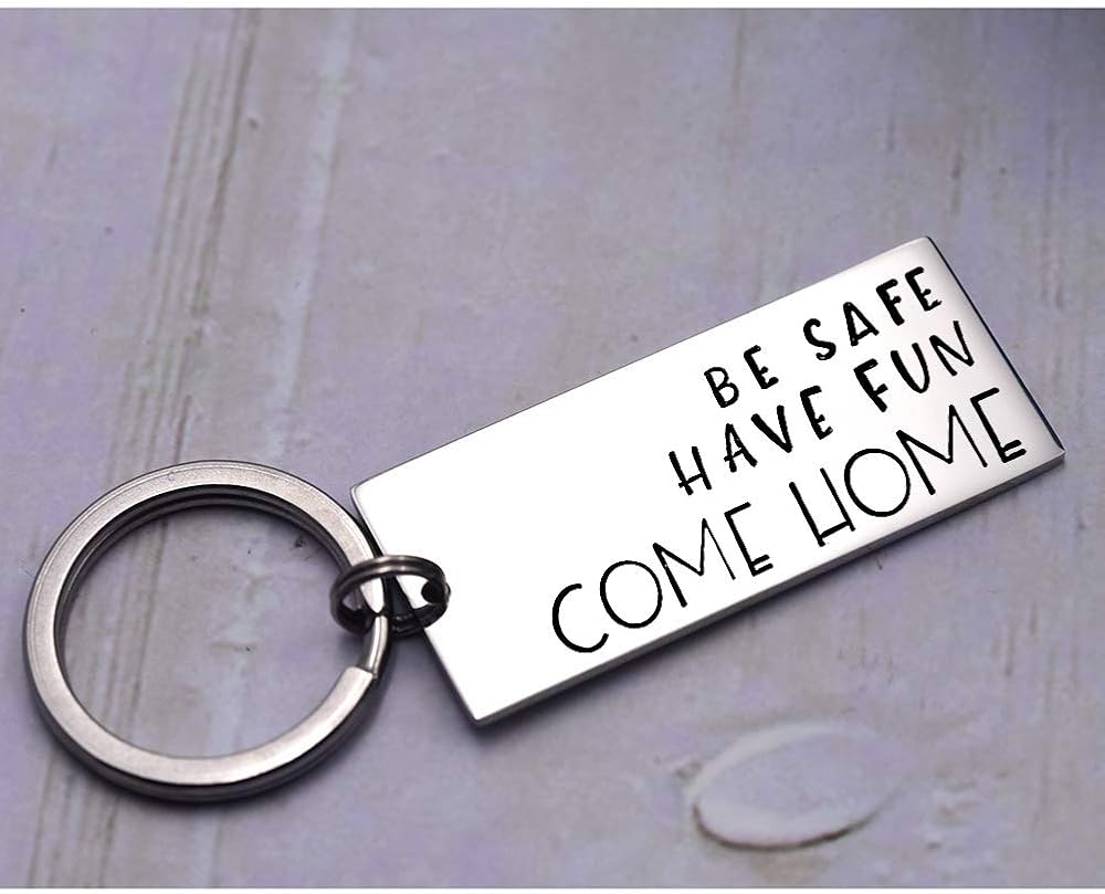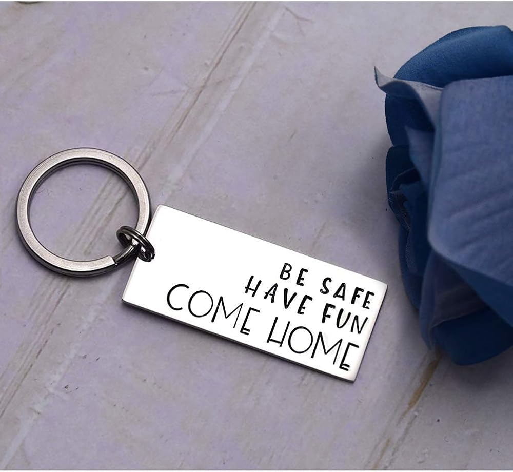 سلسلة مفاتيح Queyuen Be Safe Have Fun Come Home Driver تأتي إلى المنزل في سن المراهقة كهدية عيد ميلاد للمراهقين
