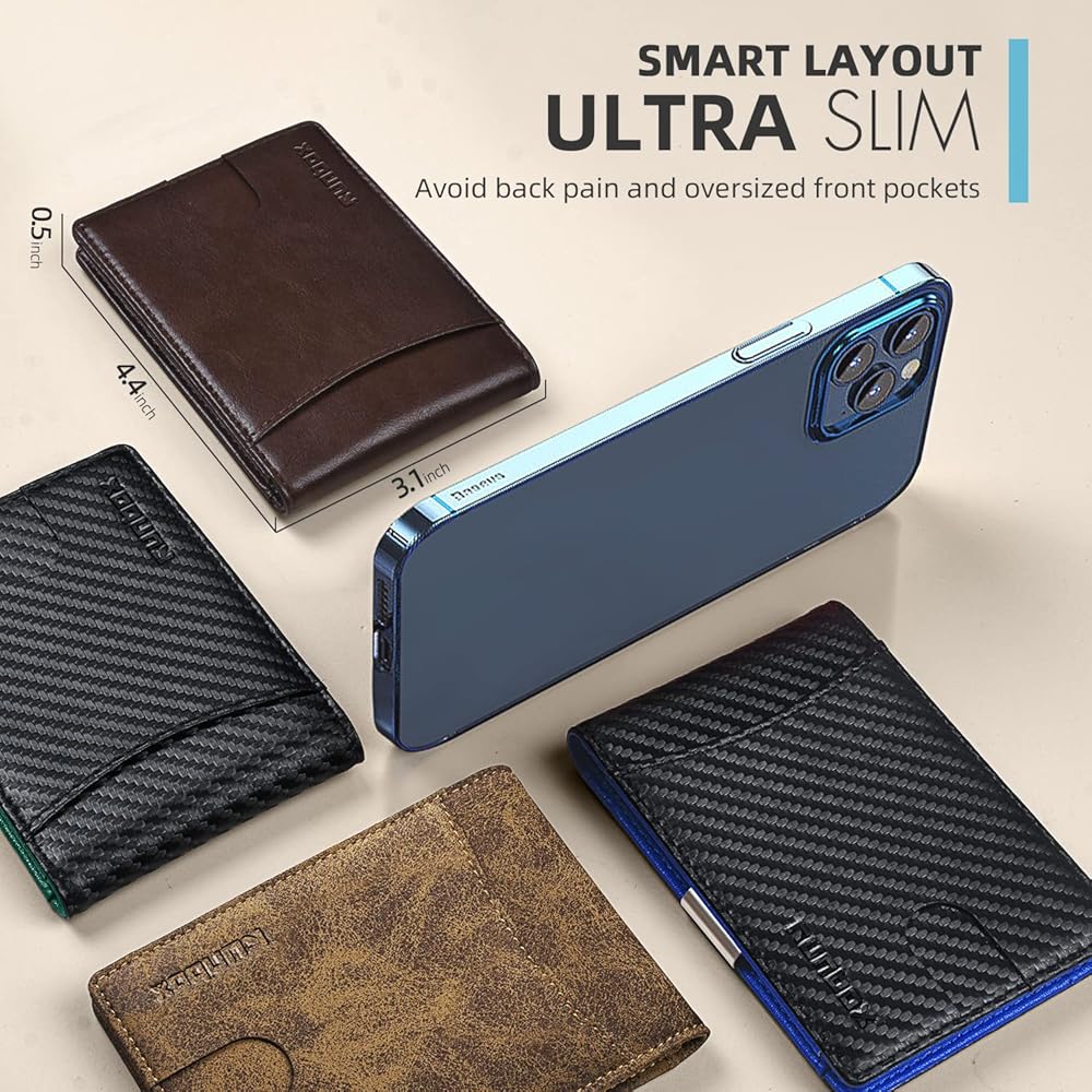 • 【نحيف ورفيع】: مع تصميم متطور لمساحة البطاقات، حتى عندما تكون محفظتك للرجال مليئة بالبطاقات، يبلغ حجمها حوالي 0.8 انش فقط. ستناسب جيبك الأمامي بشكل مثالي دون انتفاخ.