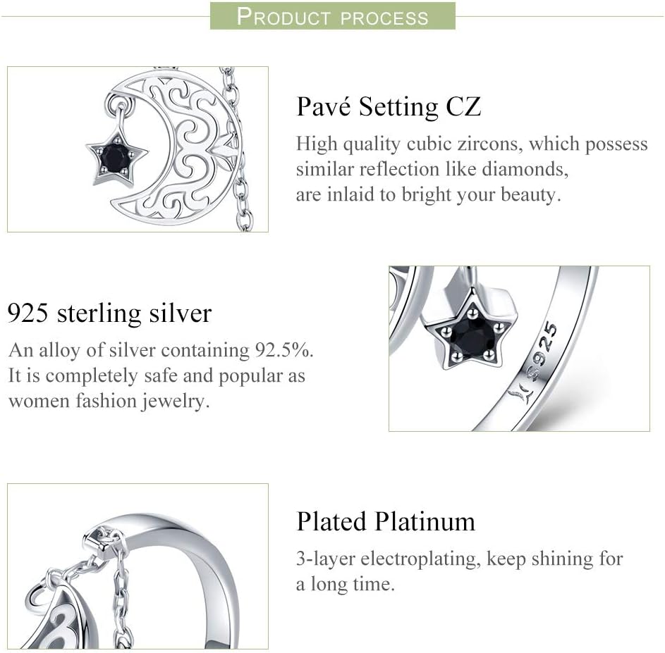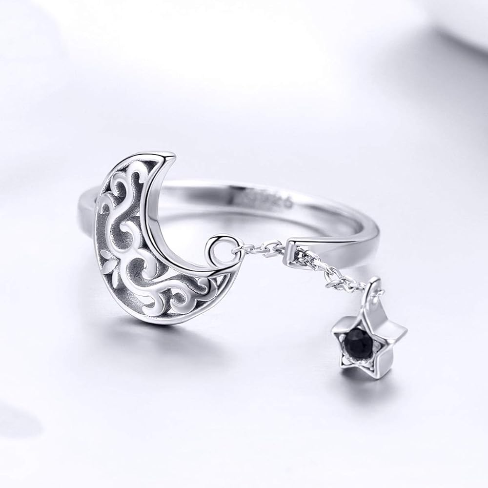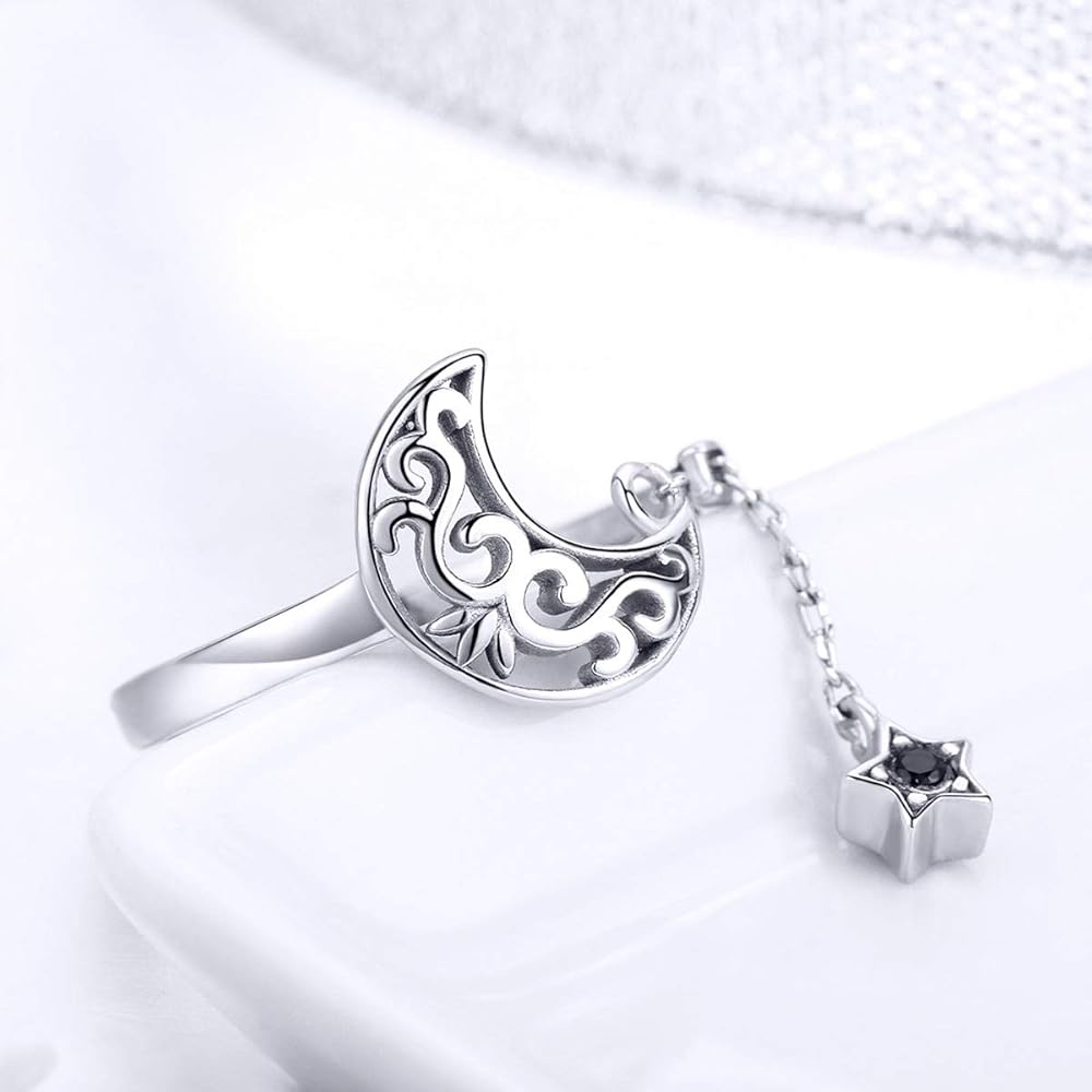 خاتم كريستنت القمر والنجم الفرقة من الفضة الاسترليني تشيكوسلوفاكيا قابل للتعديل سلسلة شرابة خاتم الخطوبة للنساء الفتيات