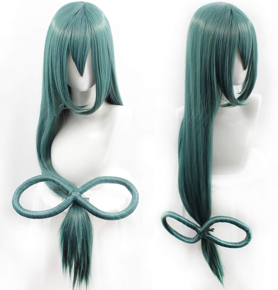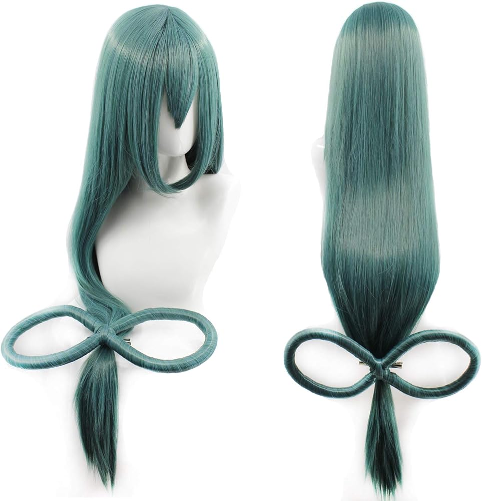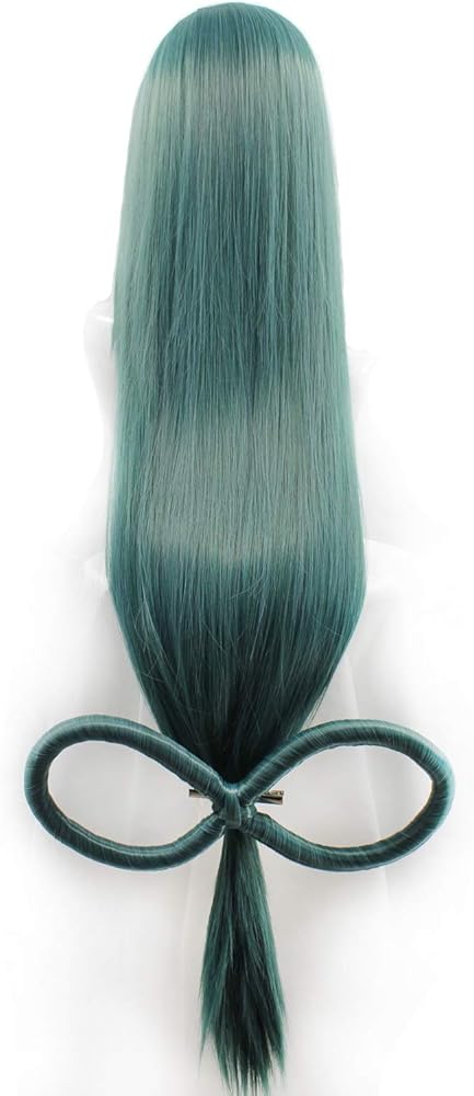 طول مستقيم طويل: 88.9 سم مع فيونكة باللون الأخضر الداكن للنساء، زي تنكري لعيد الميلاد والهالوين