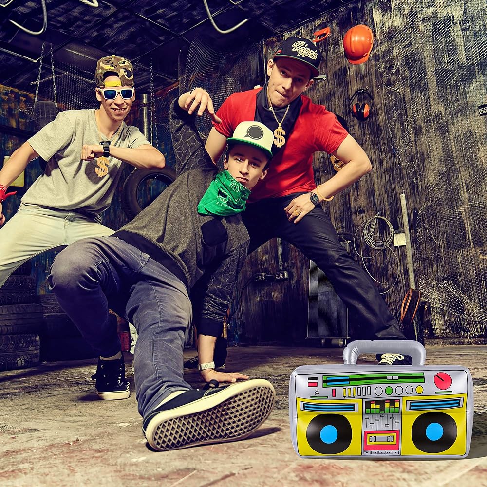 ★【لوازم حفلات الثمانينيات/التسعينات】- تتضمن مجموعة زي الهيب هوب قطعة واحدة من قبعة دلو أحمر، وسلسلة بلاستيكية ذهبية مزيفة مقاس 88.9 سم، وسوار ذهبي صناعي، وقطعة واحدة من خاتم إصبع علامة دولار ذهبي، ونظارة شمسية للجنسين هيب هوب، وصندوق بوم قابل للنفخ، وعدد 1 من الهواتف المحمولة الراديو، وطراز 80/90s هو النمط الرائع اختر لورك حفلة قفز.