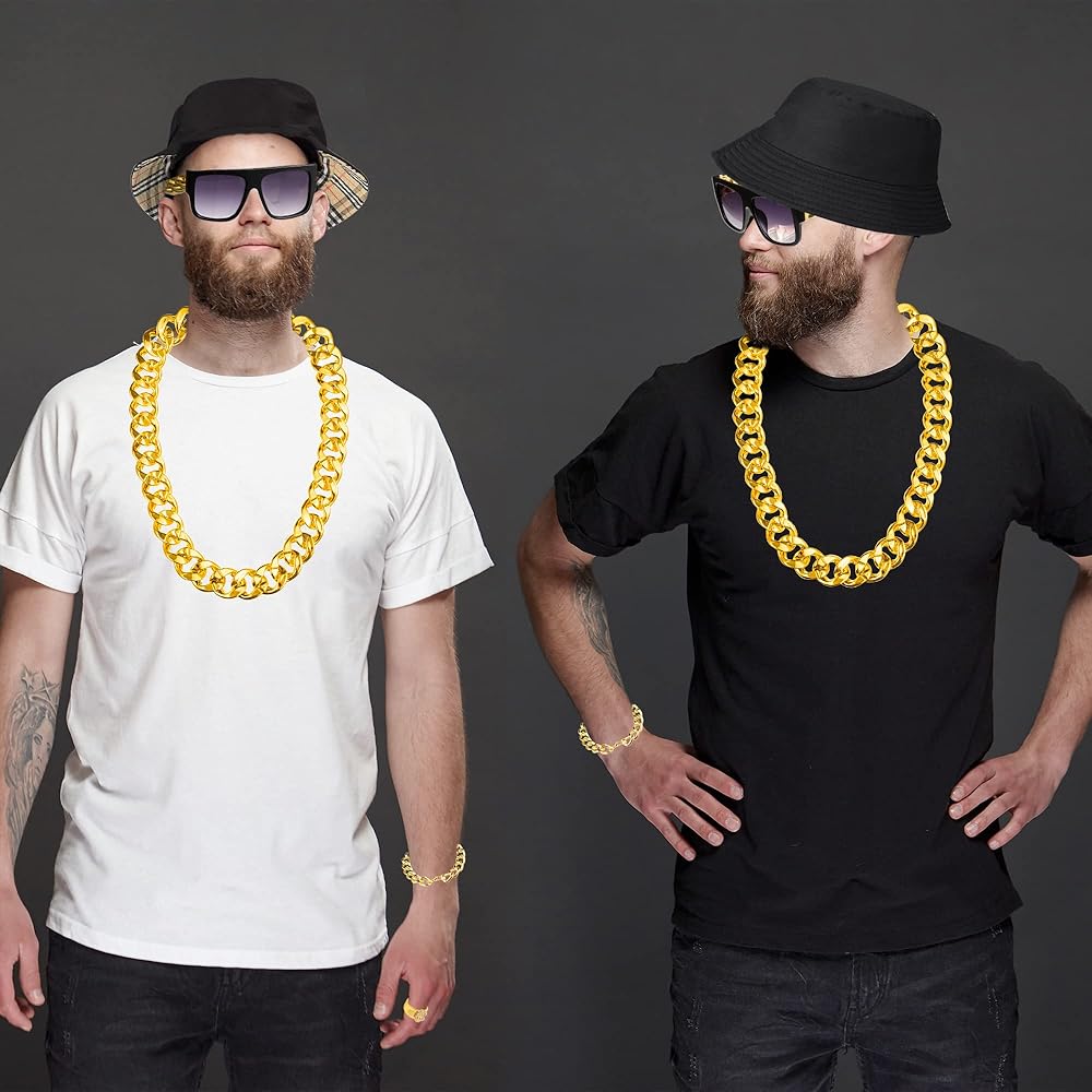 ★【تطبيق واسع】- تتميز إكسسوارات الهيب هوب هذه بتصميم كلاسيكي وكلاسيكي وعصري ومناسب جدًا لحفلات الثمانينيات والتسعينات وبدلات هيب هوب لمحبي الموسيقى. إنه أكثر فساتين عصرية لعيد الشكر والكريسماس والجمعة السوداء والإنترنت والاثنين والحفلات التنكرية وغيرها من الأنشطة. كما أنها هدية رائعة لوالدك، زوجك، صديقك، ابنتك، وهكذا.