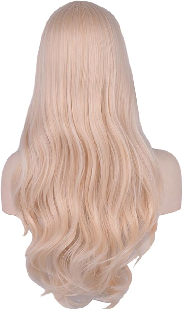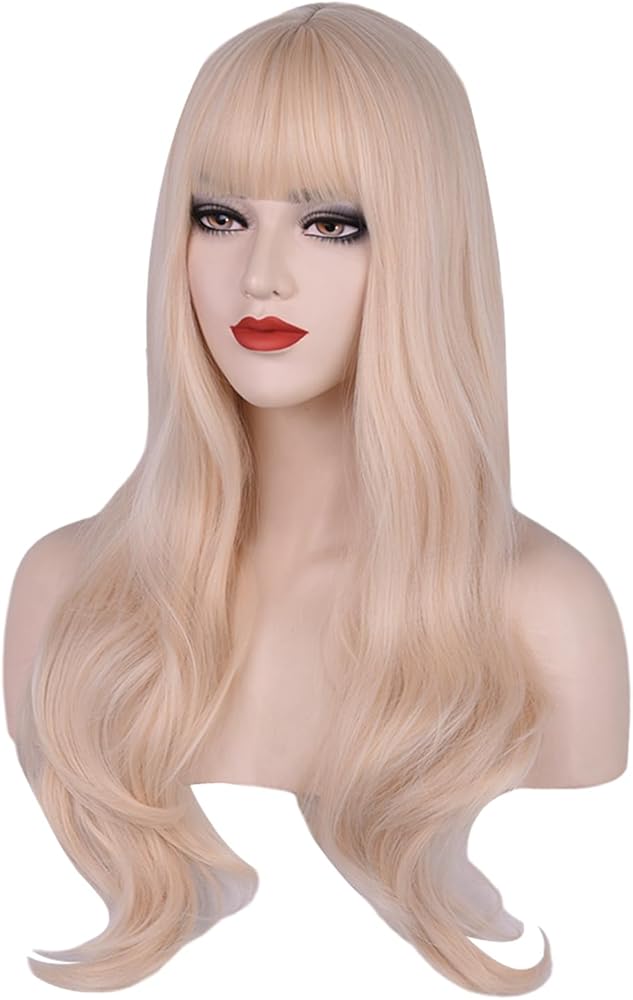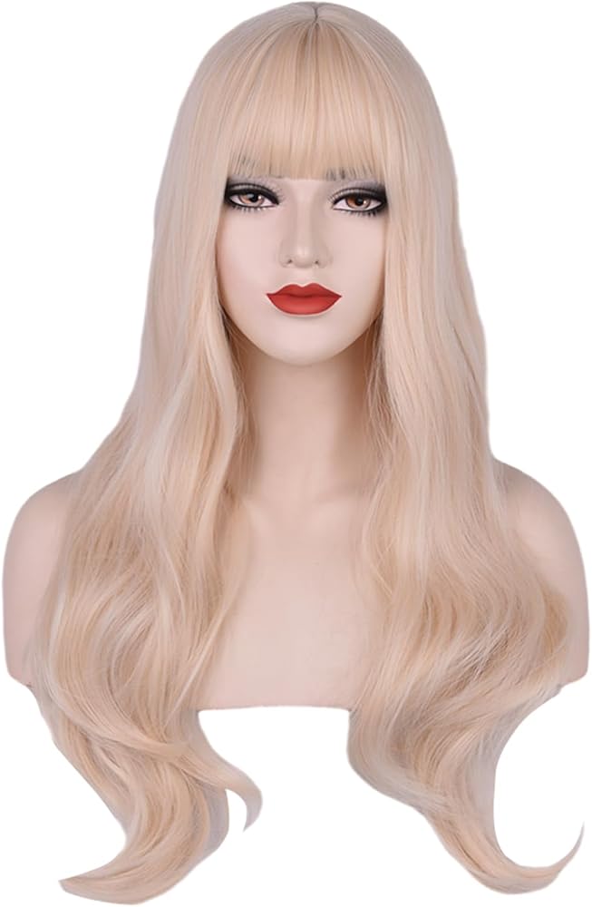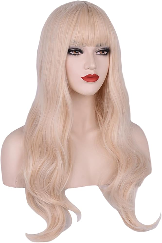 باروكة FYXZHUO طويلة متموجة أشقر فاتح مع غرة للنساء شعر صناعي مقاوم للحرارة يناسب أزياء تنكرية لحفلات الهالوين شعر مستعار للاستخدام اليومي