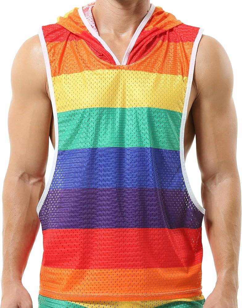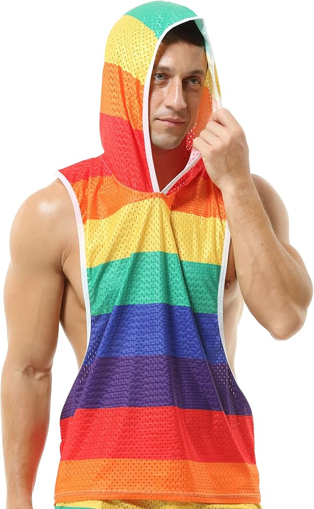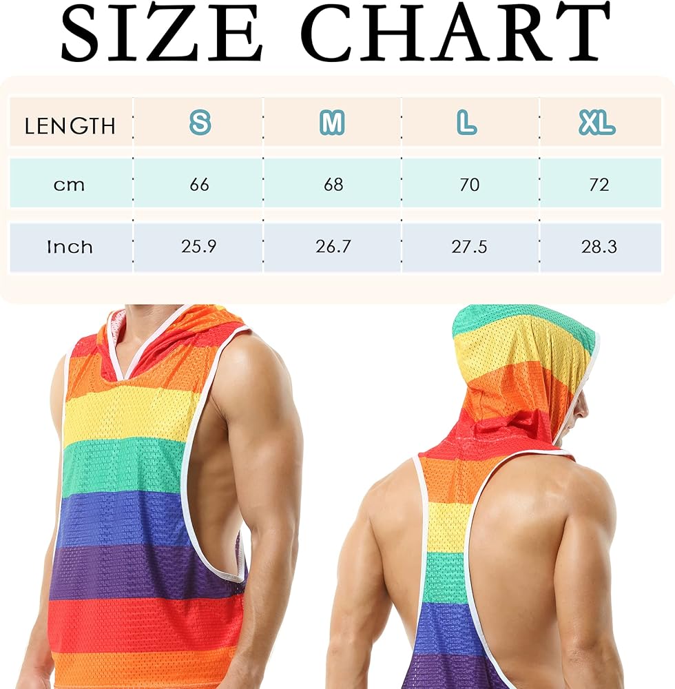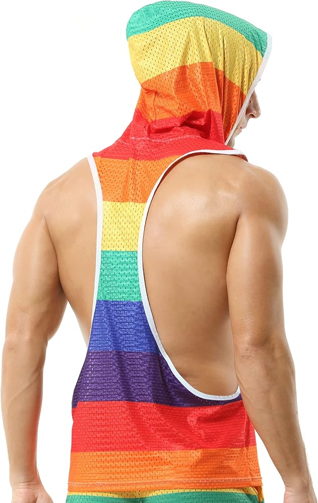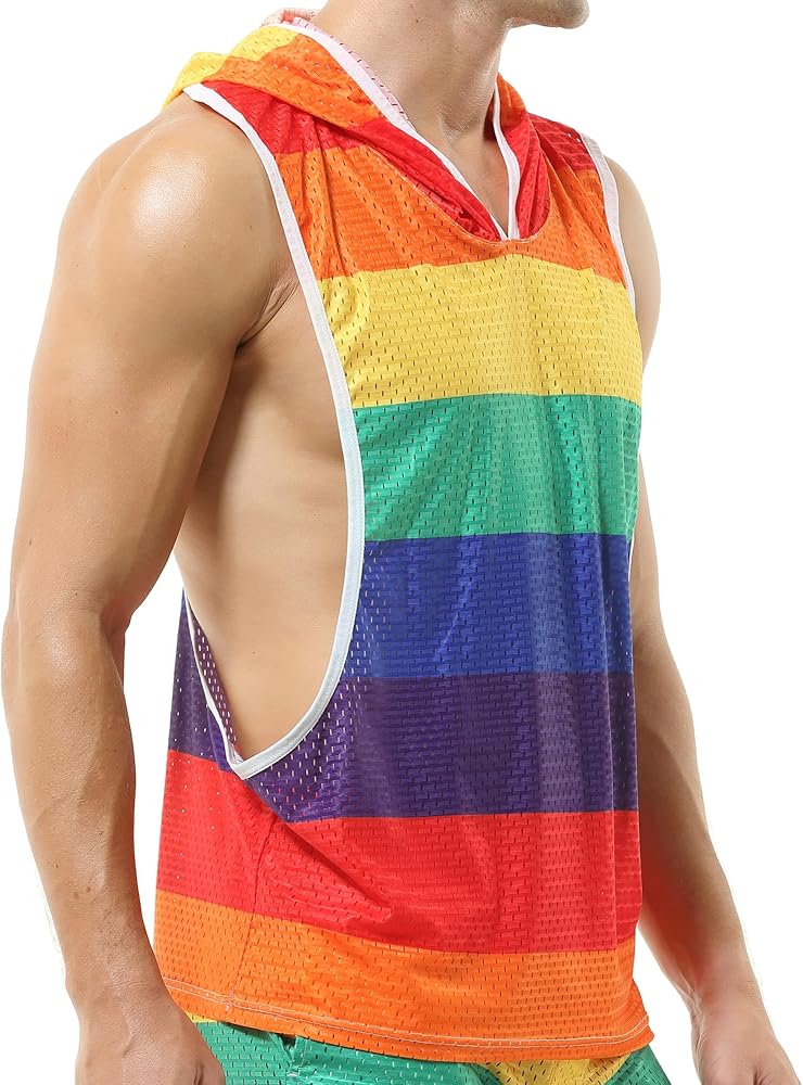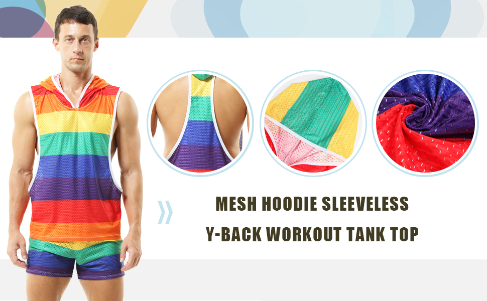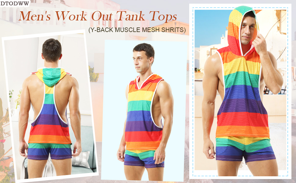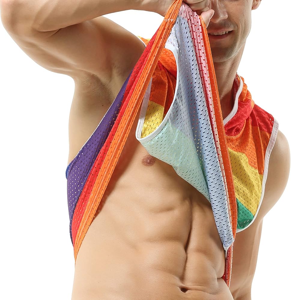 DTODWW الرجال تجريب تانك القمم قوس قزح فخر مقنعين أكمام Y-الظهر العضلات شبكة Shrits لممارسة رياضية مريحة