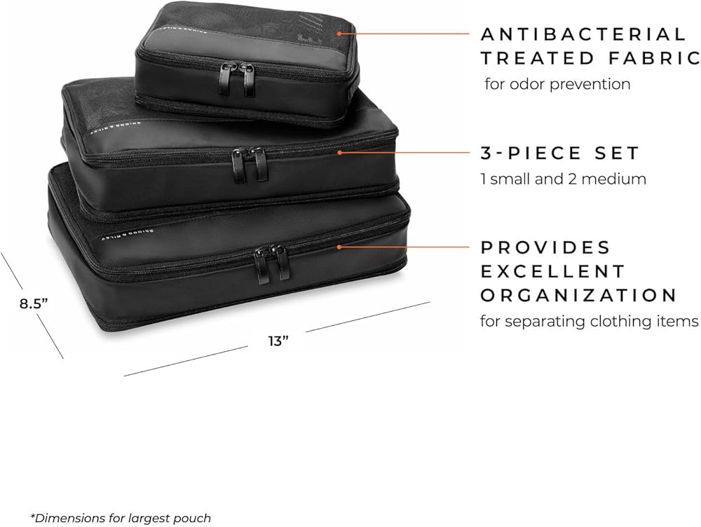 توفر لك تنظيمًا سهلاً لتعزيز تجربة سفرك، حيث تتوافق Travel Essentials بسلاسة مع حقيبة Briggs & Riley الخاصة بك. حجم مثالي ليناسب حقيبة بريجز آند رايلي المحمولة، مجموعة مكعبات التعبئة المكونة من 3 قطع هي أفضل طريقة للبقاء منظمًا أثناء التنقل.