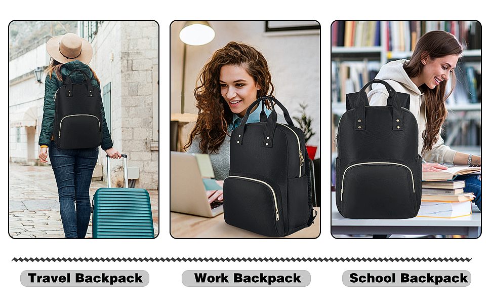 【 متعددة الأغراض ومريحة 】: تتميز حقيبة ظهر الكمبيوتر المحمول للأعمال للنساء بتصميم مثالي. احمل المقبض العلوي كحقيبة يد أنيقة، أو استخدمه كحقيبة ظهر. ميزات متعددة لجعل رحلتك والسفر أكثر ملاءمة. يمكن استخدام حقيبة ظهر العمل كحقيبة ظهر مثالية للسفر، أو حقيبة ظهر للسفر، أو حقيبة ظهر للكمبيوتر المحمول، أو حقيبة ظهر للعمل للتمريض، أو حقيبة ظهر للمعلم، أو حقيبة ظهر للطبيب، أو حقيبة ظهر لعطلة نهاية الأسبوع، إلخ.