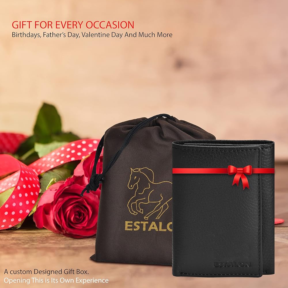 محافظ جلدية حقيقية للرجال - محفظة ثلاثية الطي بتصميم حجب RFID مع فتحات للبطاقات, هاي بلاك, Small, محفظة Rfid