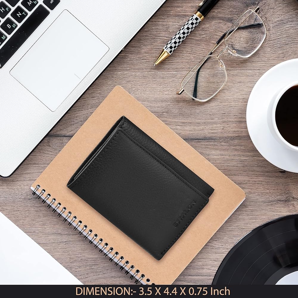 • المواد: مصنوعة من جلد أصلي 100%، محفظتنا الجلدية ثلاثية الطيات متينة وتدوم طويلاً. مصنوعة يدوياً على يد مصممين محترفين، محافظنا الجلدية مصممة للرجال لحمل النقود وبطاقات الائتمان وغيرها من الملحقات في مكان واحد.