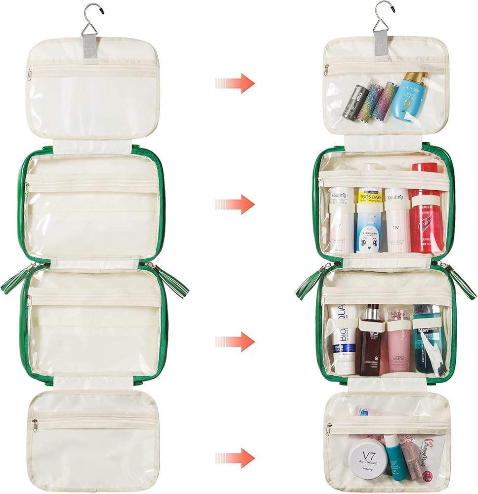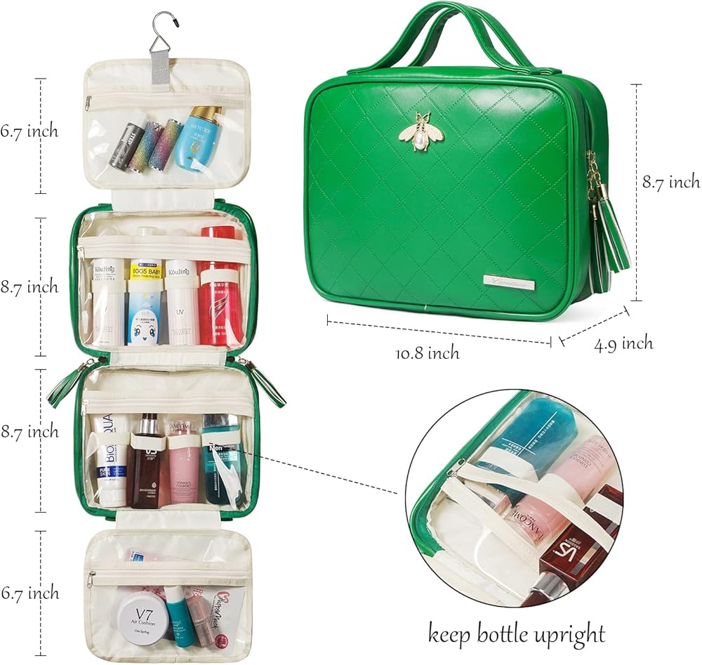 حقيبة أدوات الزينة المعلقة للنساء من لاكاتورا، حقيبة مكياج جلدية للسفر، منظم مستحضرات التجميل الكبير، 4 طبقات حقيبة صحية محمولة مقاومة للماء، منظم الحمام للشامبو، المكياج، الأغراض الشخصية، أخضر