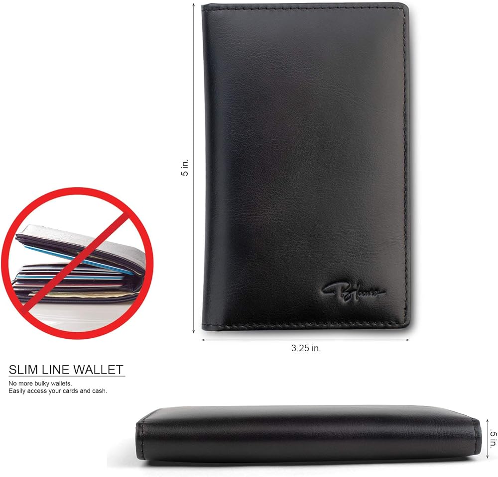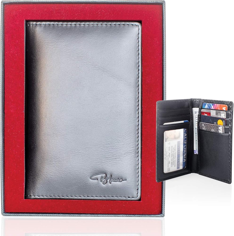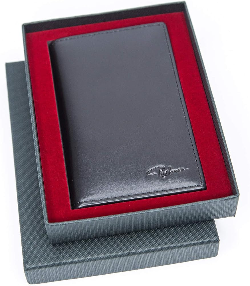 Blacaro - محفظة Tressario Minimalist رفيعة للرجال RFID تحجب جيب الصدر ومحفظة صندوق هدايا جلدية (أسود)