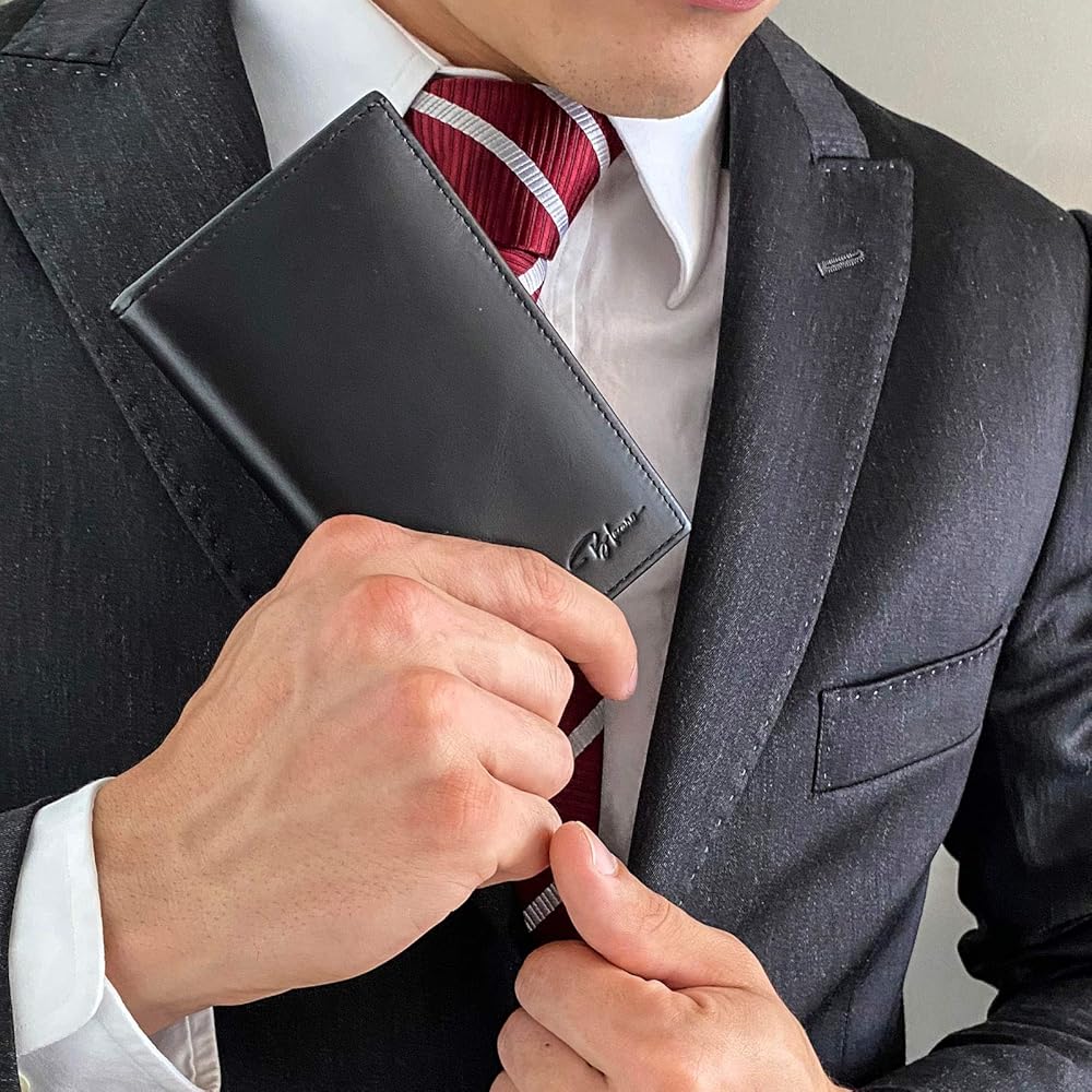 • ✔ محفظة جيب الصدر تحمل بطاقات الائتمان وبطاقات العمل والعملة الورقية بسهولة. ويستوعب تكوينها الأوسع عملات دولية أكبر مثل اليورو والكورونا. تنزلق هذه المحفظة الجلدية الرفيعة وحامل البطاقات بشكل خفي في جيب سترتك دون انتفاخ واضح.