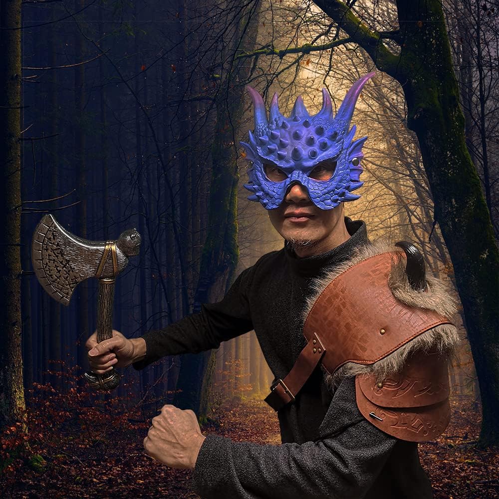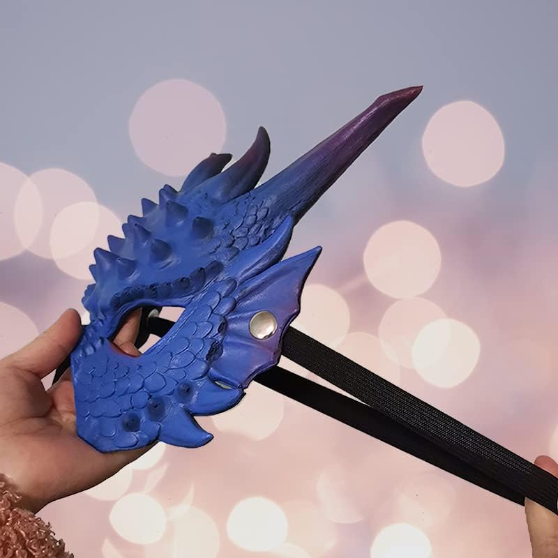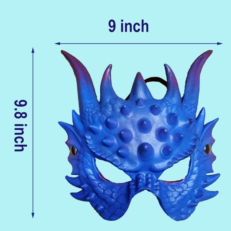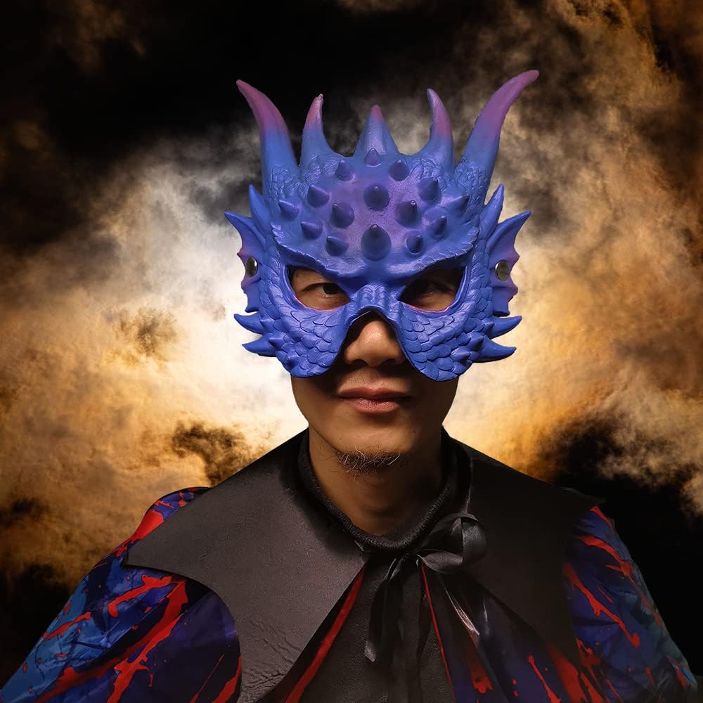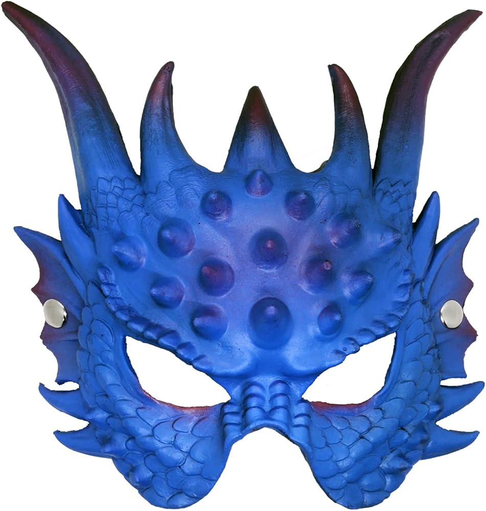قناع التنين: يتميز قناع التنين بجلد أزرق منحوت وقشور وقرون طويلة. ملمس مريح، مع شعور ستيريو وإحساس بالواقع، وأشكال واقعية.