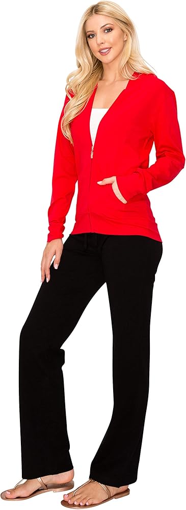 مريح وأنيق: ارتقِ بمظهرك مع سترة بغطاء رأس سادة كاجوال من القطن المريح خفيف الوزن بسحاب كامل من اتيلوت للنساء! يمكنك استخدامها في التمرين اليومي أو لأغراض أخرى. مناسبة للشاطئ والصالة والتمارين والمناسبات اليومية.