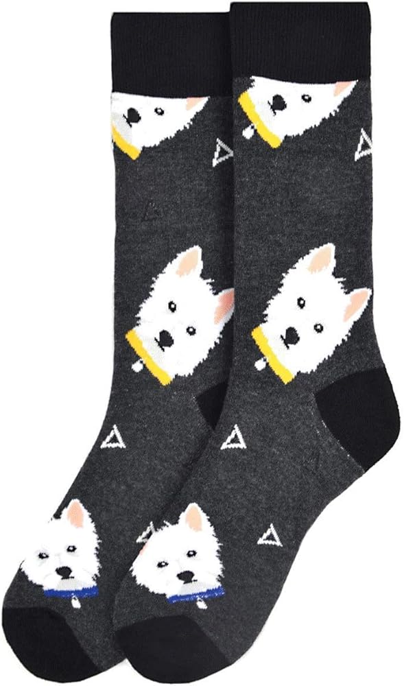 هدية رائعة للرجال محبي الكلاب ويستي. جوارب مبتكرة لطيفة ومريحة باللون الأسود والرمادي للرجال مع وجوه كلب ويست هايلاند تيرير. هدية للآباء الذين يحبون كلاب ويستي.