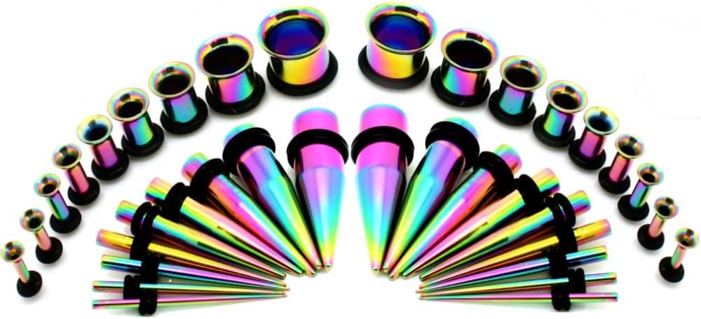 طقم نفق وأذن من الفولاذ المؤكسد من التيتانيوم - مجموعة مكونة من 36 قطعة من 14 جم إلى 00 جم