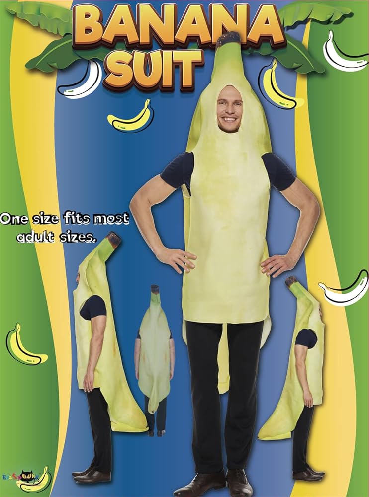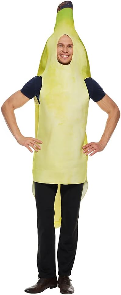 زي فانتاستكوستومز التنكري للموز الإسفنجي للبالغين، زي الهالوين الممتع للطعام والفواكه، أصفر