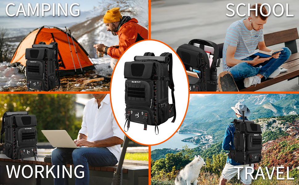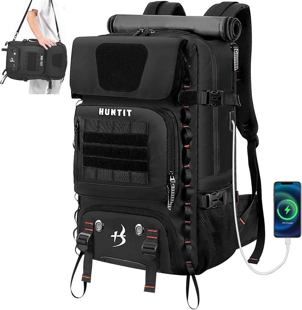 شنطة ظهر للابتوب متعددة الاغراض من هانتيت، شنطة ظهر تكتيكية قابلة للتحويل من البوليستر 600D مقاومة للماء، شنطة ظهر للمشي لمسافات طويلة للرجال والنساء (اسود)، اسود