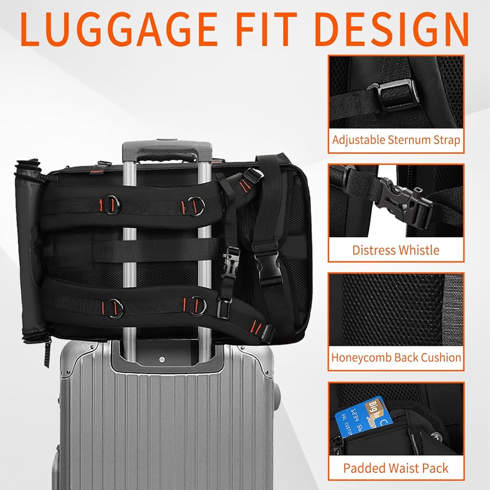 • 1. سعة كبيرة جدًا: تأتي حقيبة الظهر للسفر من هانتيت بسعة تصل إلى 77 لتر، مما يسمح لك بحمل ضرورياتك اليومية بطريقة مريحة ومنظمة. مصممة بأكثر من 12 مساحة تخزين مختلفة، خذ ملابسك والإلكترونيات والأحذية والإسعافات الأولية والمعدات الخارجية، بدون متاعب أينما تريد.