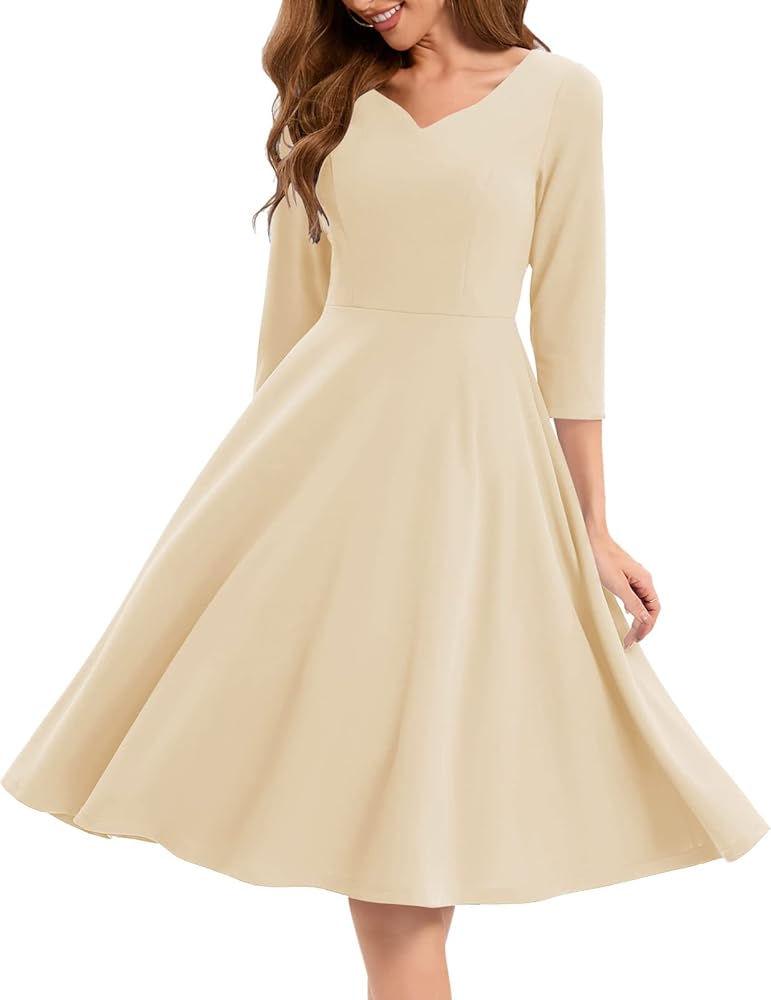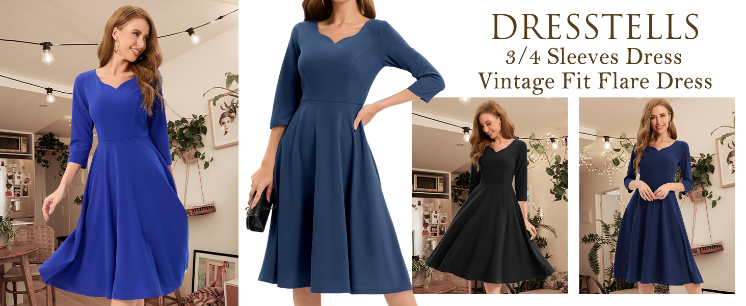 فستان حفلة الشاي العتيق - هذا الفستان المزين بالزهور والمتوهج خفيف وخفيف. هذا الفستان شبه الرسمي مثالي أيضًا للاستخدام اليومي والعمل، مما يساعدك على تحقيق التوازن بين احتياجاتك في العمل والرفع. أكمام 3/4، خط على شكل حرف A، رقبة على شكل حرف V، طول الشاي - كل هذه التصاميم مرحب بها طوال العام!