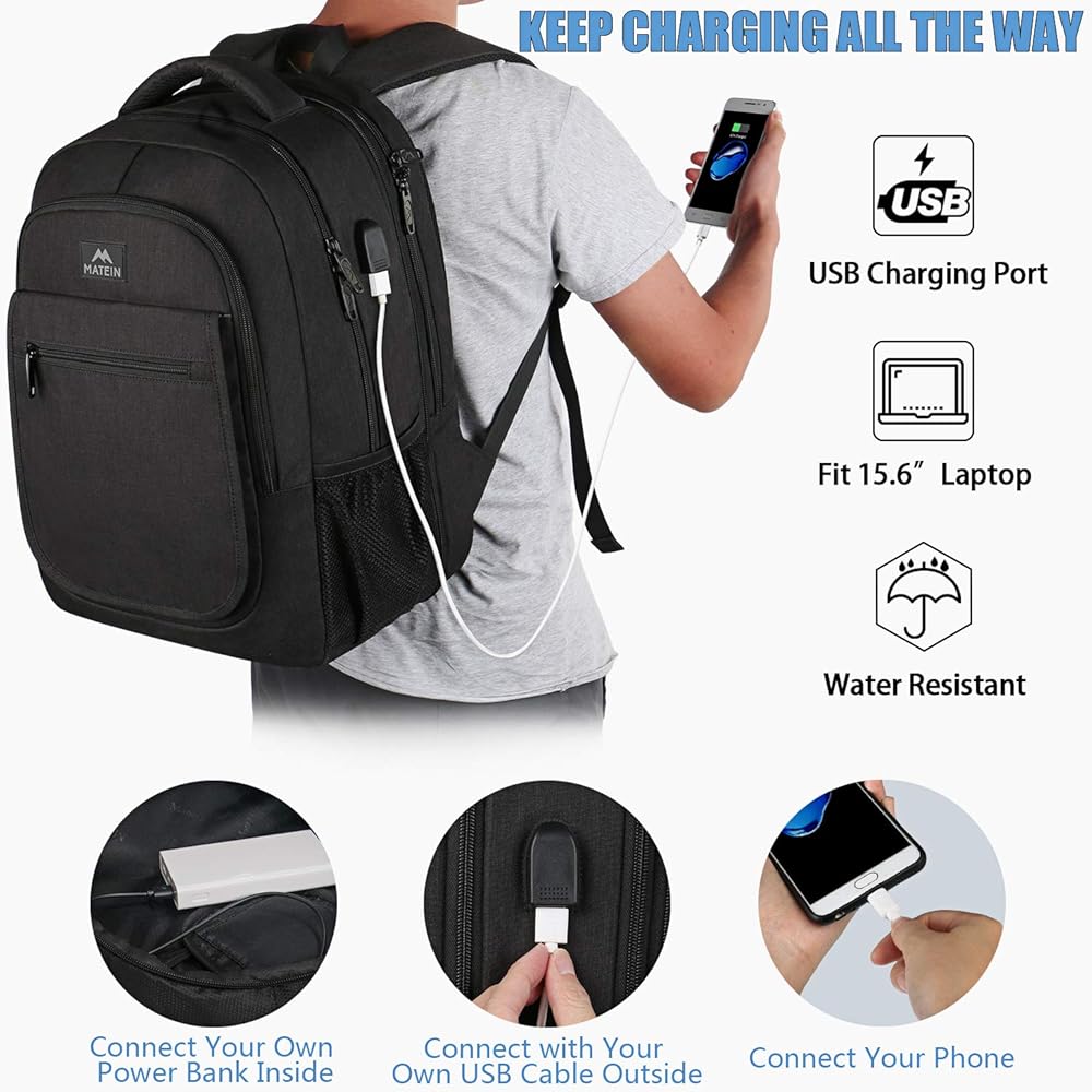 ✈[منفذ USB ومضاد للسرقة] مع كابل شحن USB مدمج، توفر لك حقيبة الظهر للكمبيوتر المحمول مقاس 15.6 بوصة المزودة بمنفذ USB طريقة أكثر ملاءمة لشحن هاتفك أثناء التجول في الكلية. تحتوي حقيبة الظهر المضادة للسرقة على جيب مخفي في الخلف، ويمكنها حماية أغراضك الثمينة من السرقة. حزام الكتف مع جيب بسحاب لتذكرة الطيران وجواز السفر وما إلى ذلك. كحقيبة ظهر إلكترونية للرجال، فهي هدية تقنية لطيفة للرجال، ويمكن استخدامها كهدية لعيد الحب/الأم/الأب
