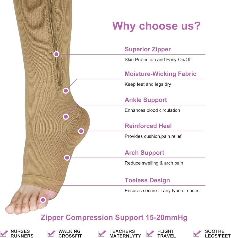 الجوارب الضاغطة بسحاب تقلل من آلام الساق والتعب من خلال الضغط المتدرج المصمم بعناية.