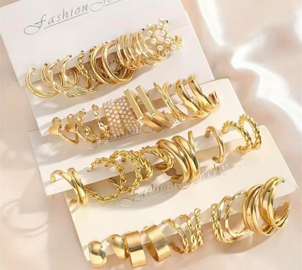 مجموعة اقراط حلقية ذهبية للنساء والفتيات، عبوة متعددة من 24 زوج، مجموعة اقراط حلقية مكتنزة لا تسبب الحساسية، اقراط حلقية ملتوية، مجوهرات متدلية انيقة للهدايا، صغير، زنك، ستانلس ستيل