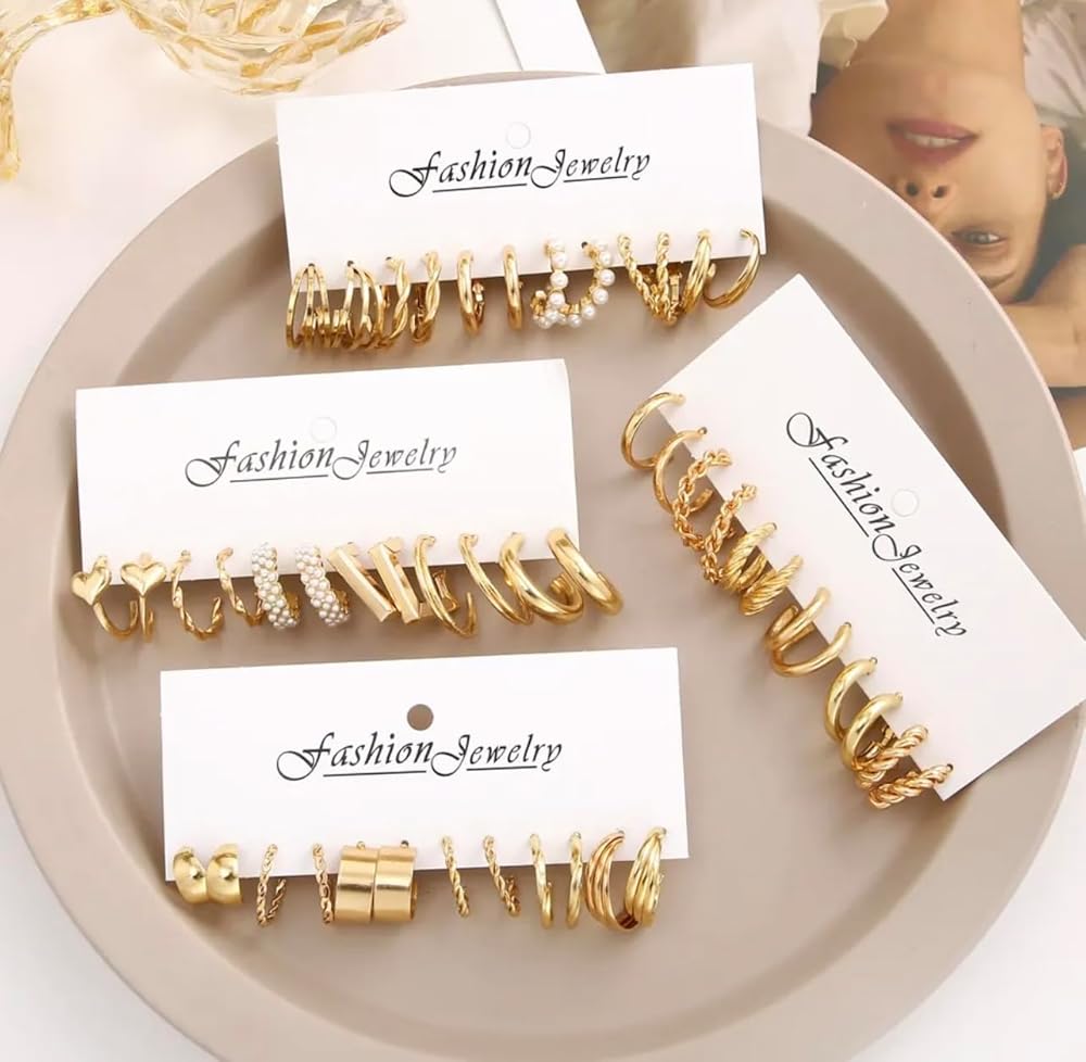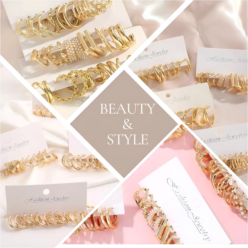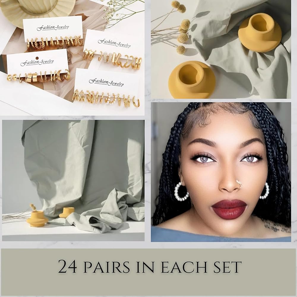 مجموعة أقراط أنيقة: توفر مجموعة الأقراط الجميلة هذه 24 نمطًا وتصميمًا مختلفًا مثل الكرواسون والأنابيب والمكتنزة المفتوحة للاختيار من بينها. مجموعة واحدة يمكن أن تلبي مختلف المناسبات واحتياجات الارتداء. أضيفيها إلى ملابسك لتبدو أكثر أناقة وعصرية وجاذبية.