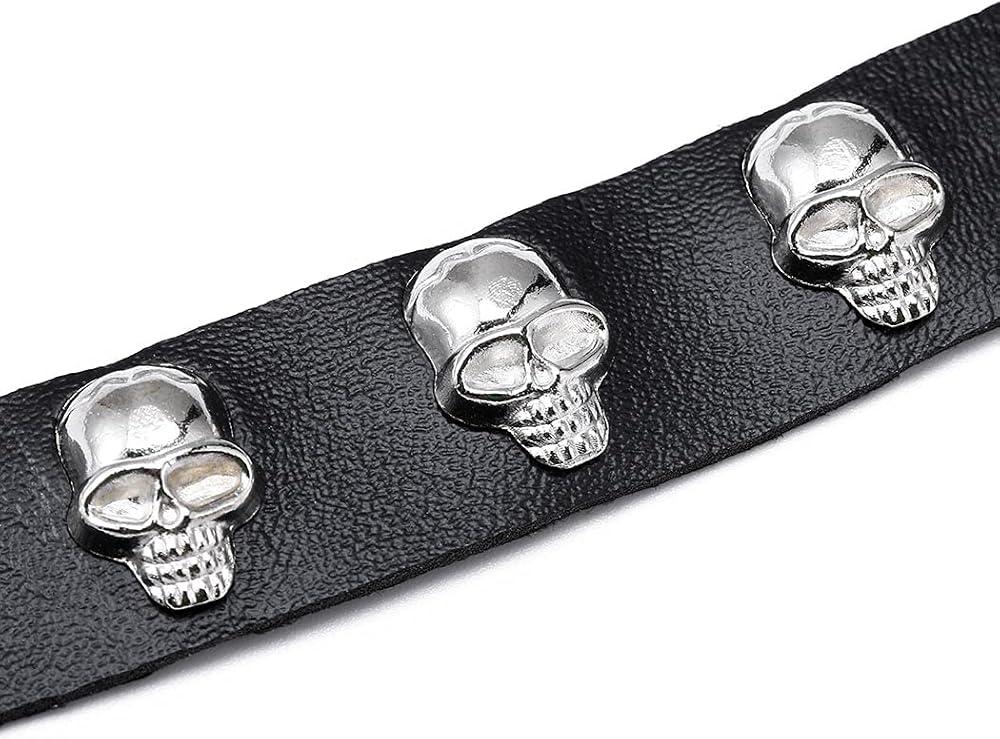 Skull collar length is 15.7in(40cm),width is 0.8in(2cm). Can adjust the length.