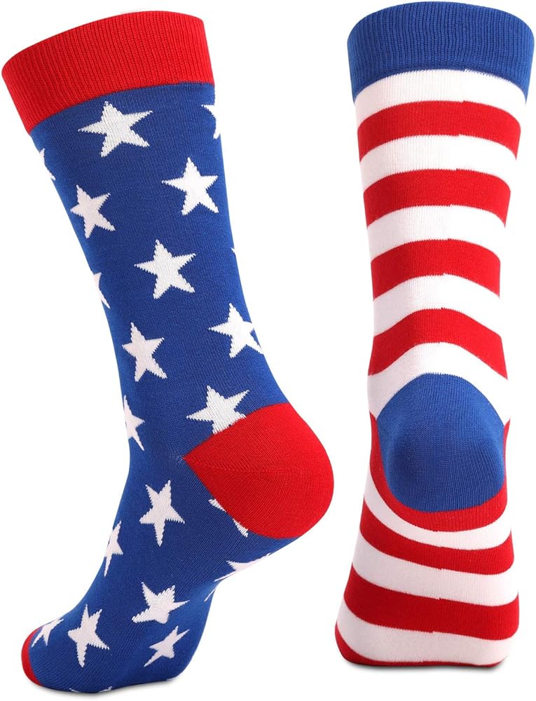 - One Size Fits Almost All American Men: These funky crazy American Flag Groomsmen Socks do fit shoe size 6-12,Sock size 10-13.
