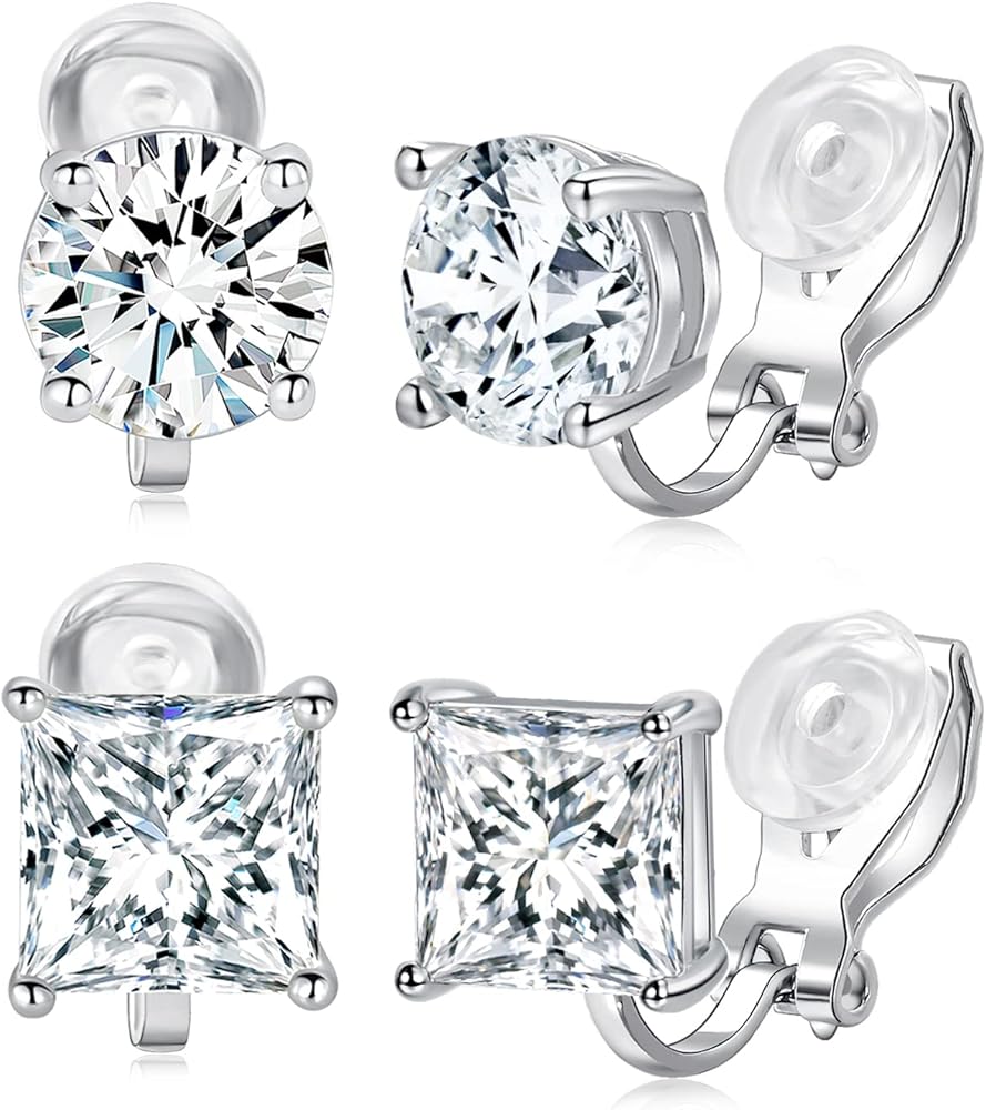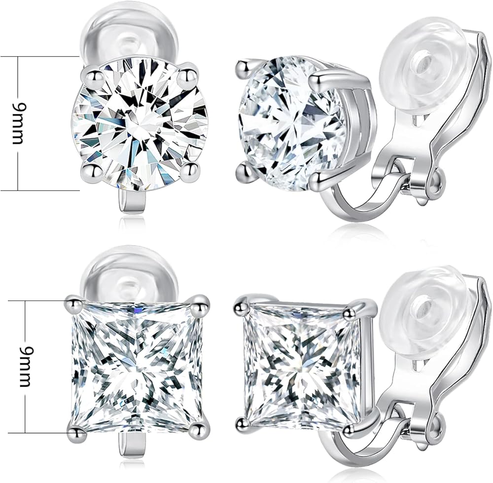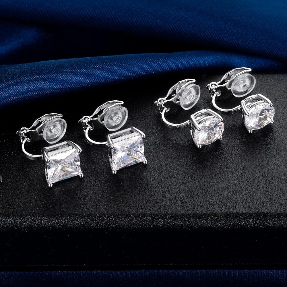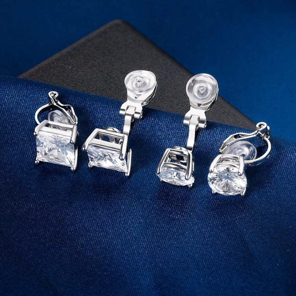Pack of clip on earrings -- 8mm Round & Square CZ Set