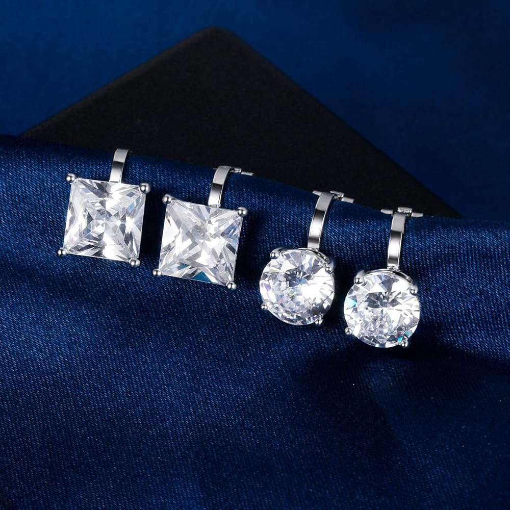 مجموعة من الأقراط ذات المشبك على شكل مكعب زركونيا مستديرة مربعة من الألماس المقلد للنساء والرجال غير مثقوبة ولا تسبب الحساسية للأذن الحساسة، مجموعة مطلية بالذهب الأبيض عيار 18 قيراط